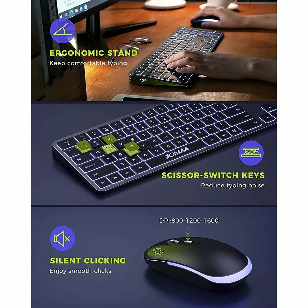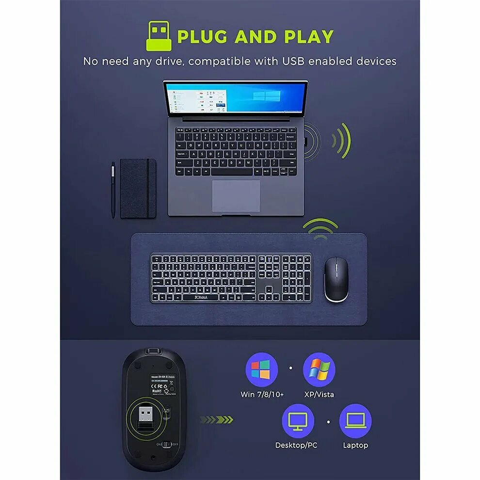 10 цен на JOMAA Комплект мышь + клавиатура беспроводная KZ3602, черно-серый