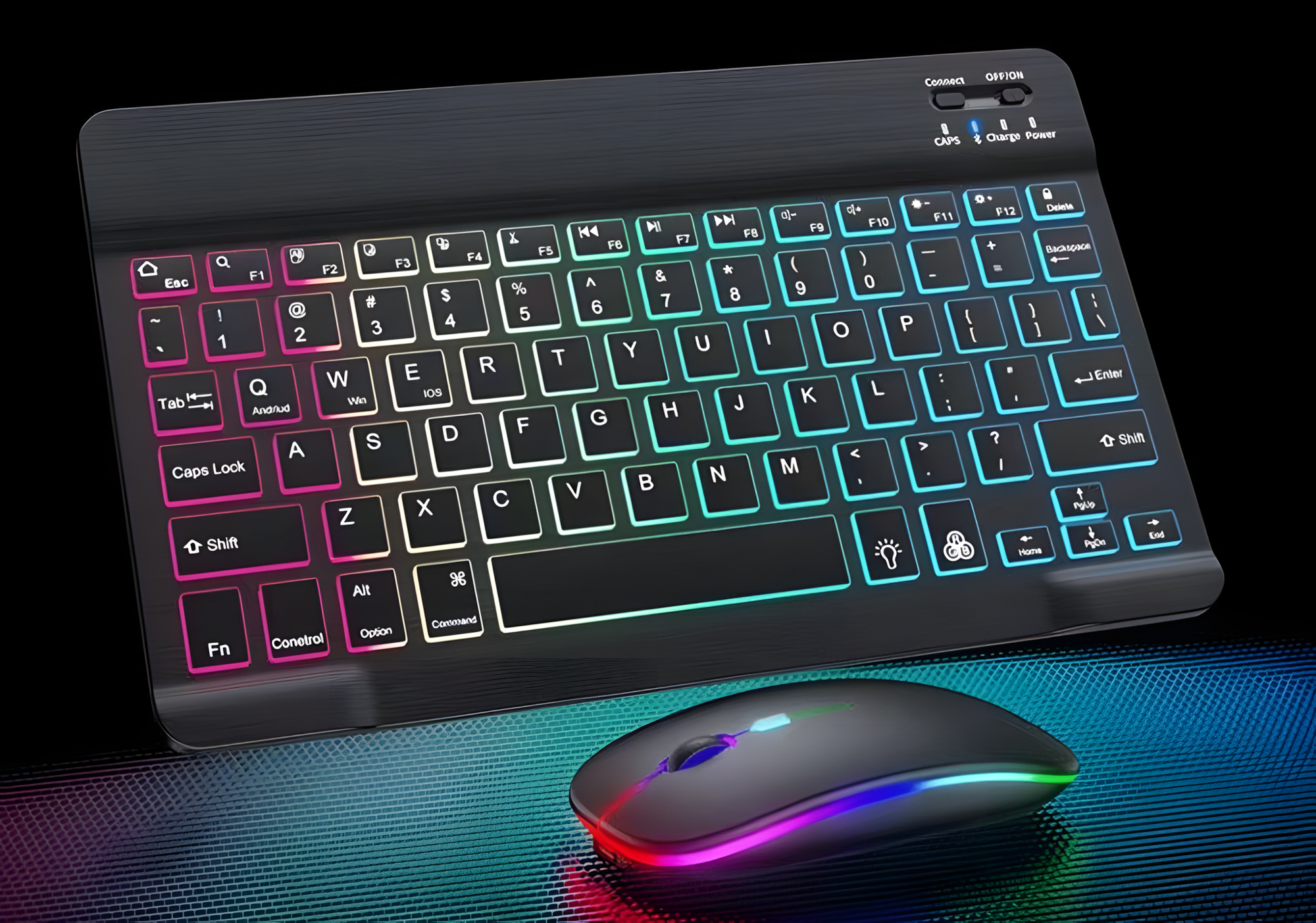 10 цен на Комплект клавиатура и мышь, беспроводные, универсальные, RGB подсветка клавиш и мыши, цвет черный