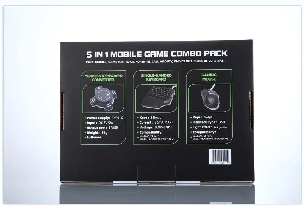 Игровой набор 5в1 для смартфона и ПК PC клавиатура, мышь, коврик, подставка для телефона информация: