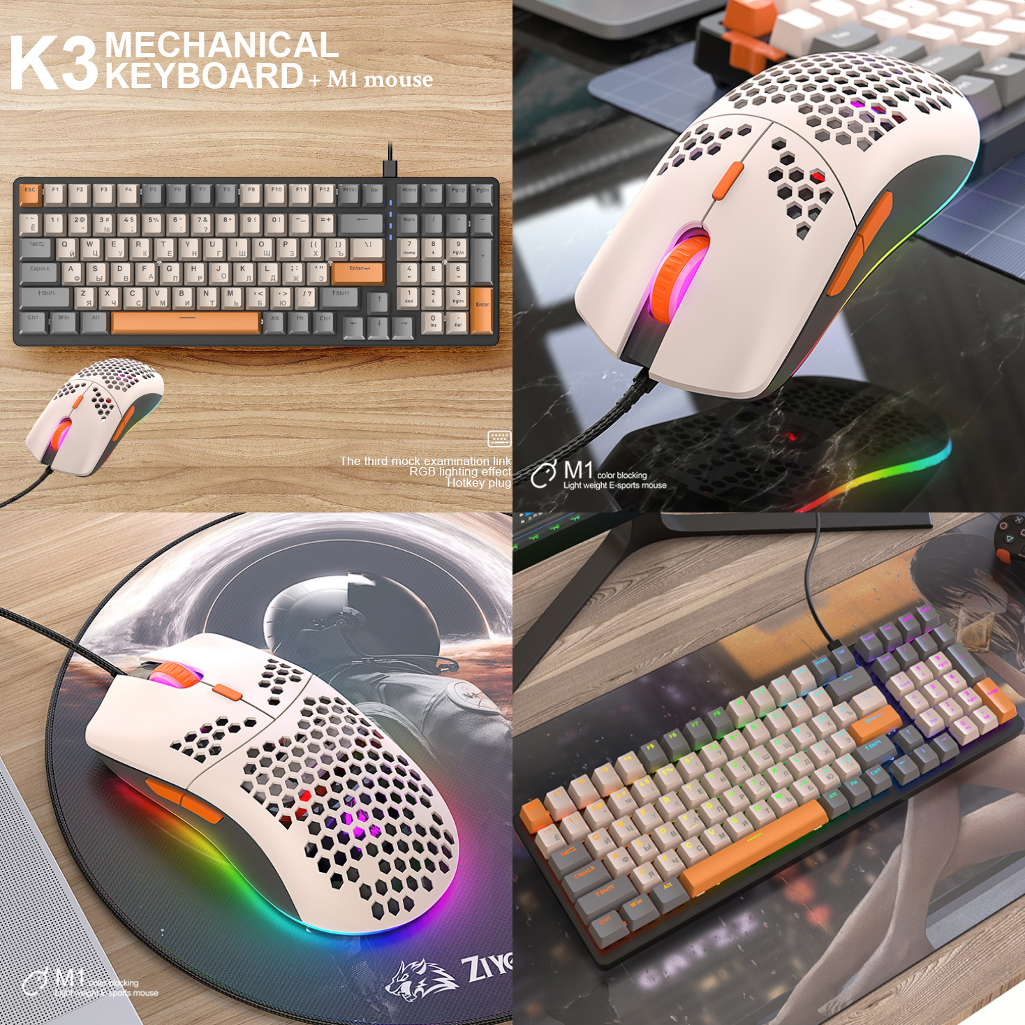 Отзывы на Комплект мышь клавиатура механическая русская К3 мышка игровая М1 с подсветкой проводная набор для компьютера ноутбука Gaming, game mouse keyboard