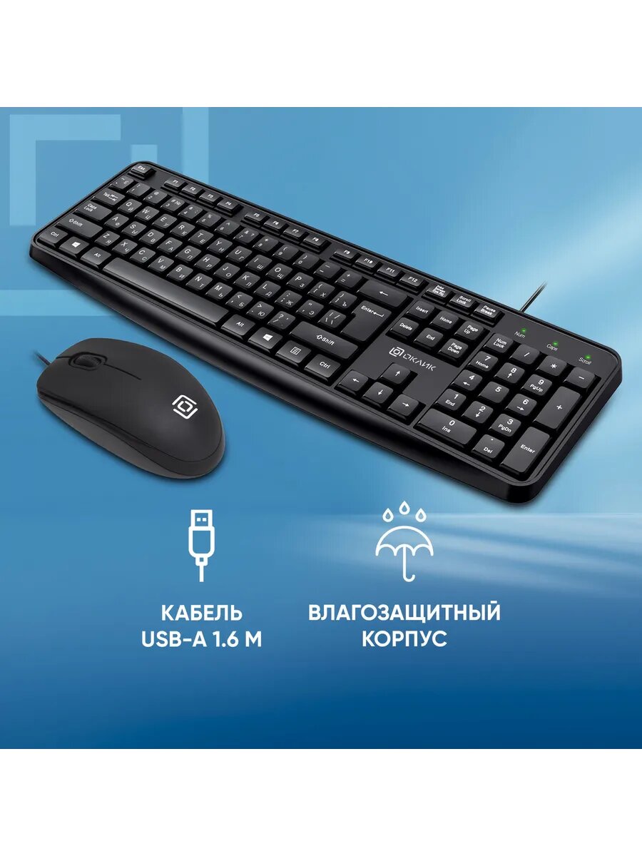 Комплект Клавиатура для компьютера с мышкой мультимедийный,1000 DPI, черный