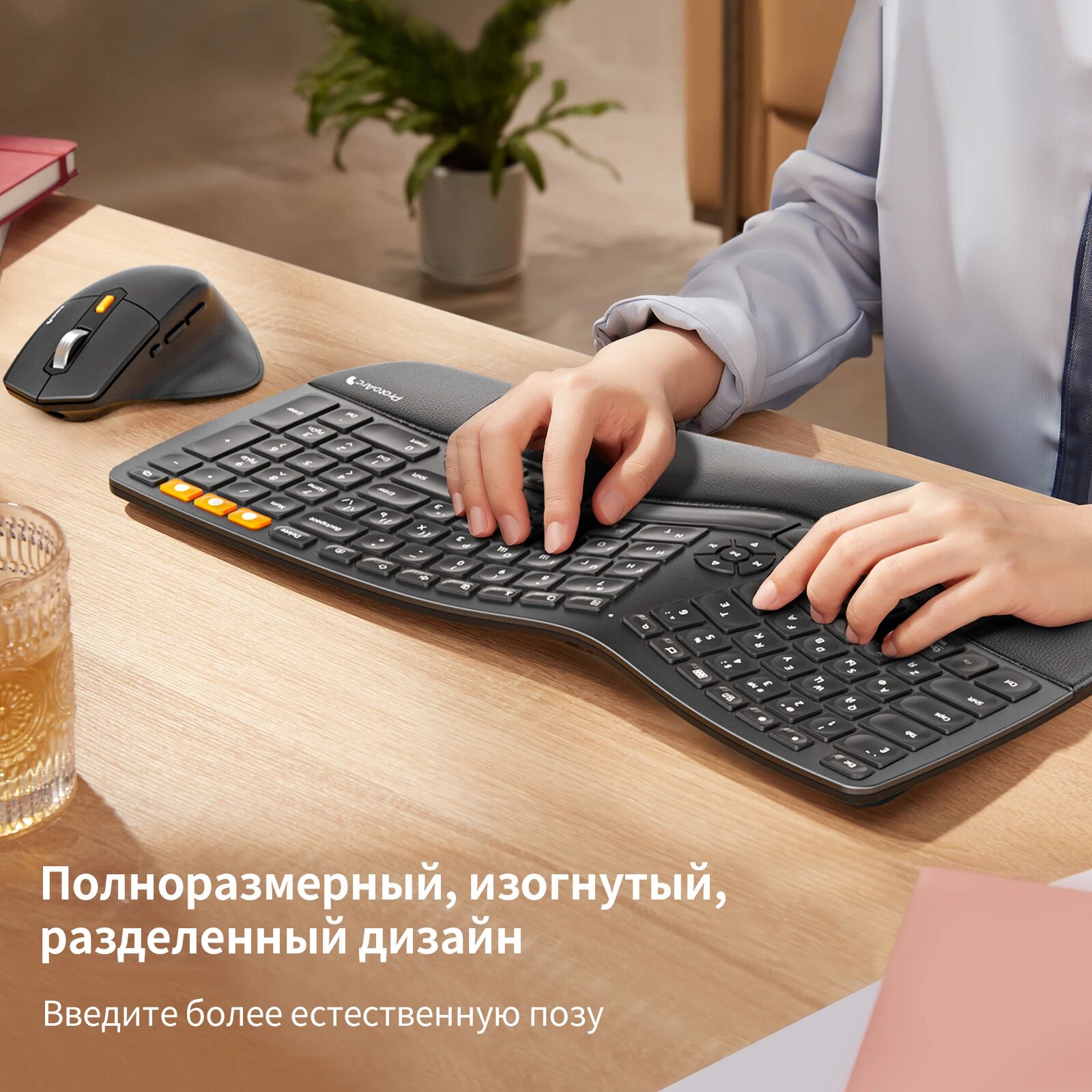 10 цен на Беспроводная эргономичная клавиатура и мышь ProtoArc, Черный