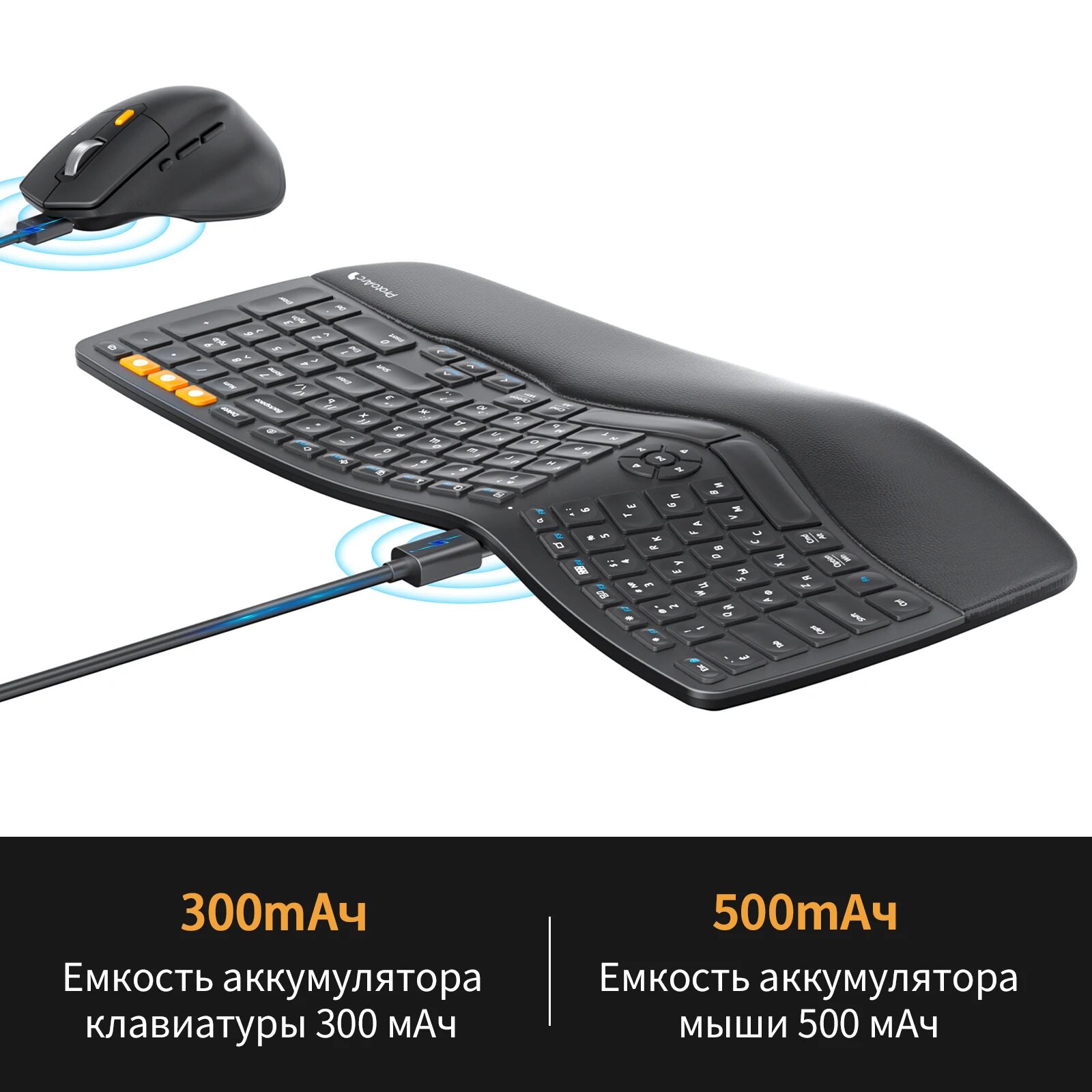 Беспроводная эргономичная клавиатура и мышь ProtoArc, Черный информация: