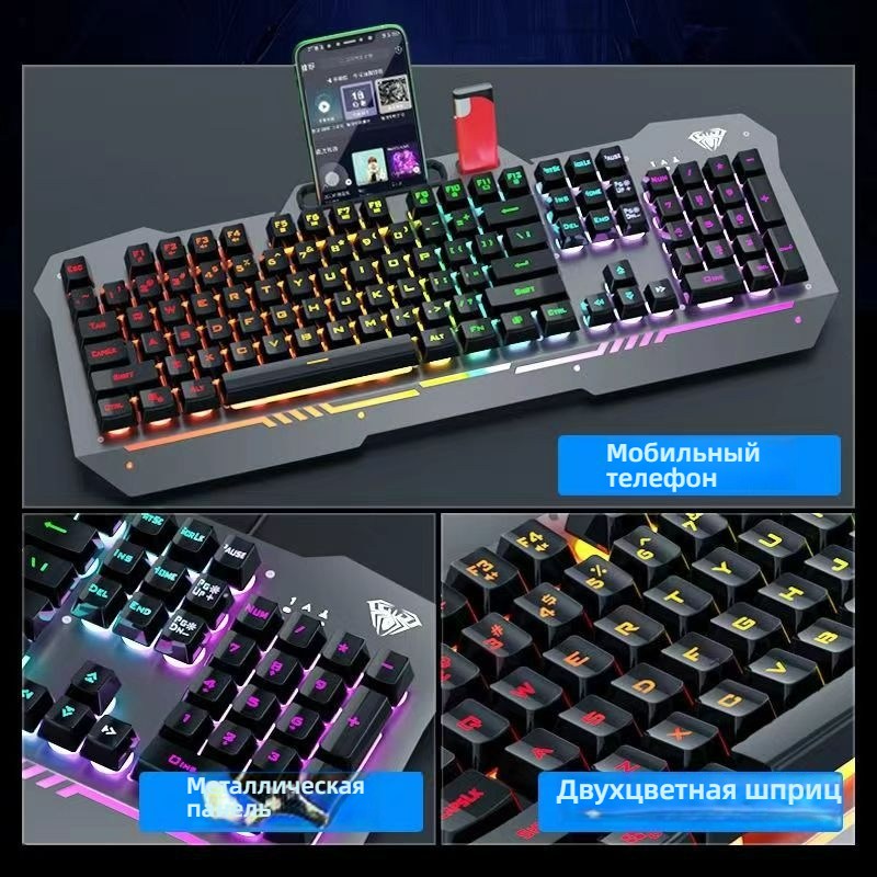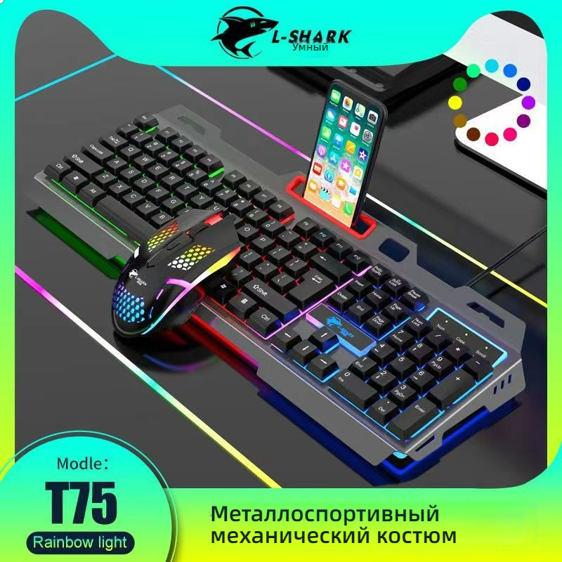 T750 Проводная клавиатура и мышь с подсветкой Игровая клавиатура и мышь в комплекте с подсветкой и механическим сенсором информация: