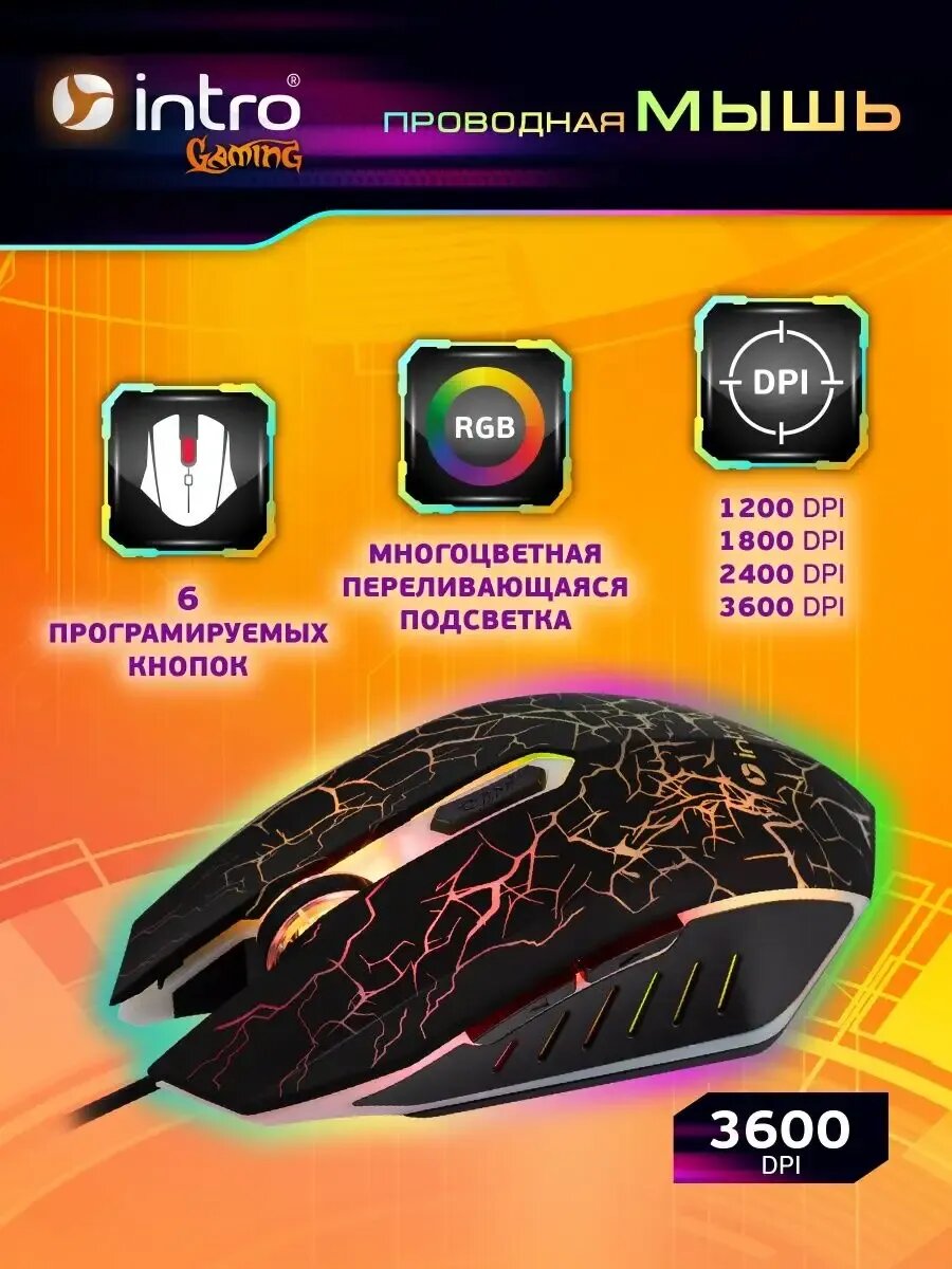 Комплект клавиатура игровая проводная мембранная + игровая мышь проводная оптическая с подсветкой 3600 dpi + коврик Intro DX750 информация: