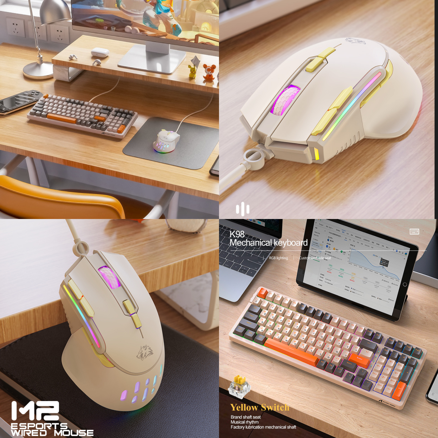 Комплект мышь клавиатура механическая русская Attack Shark R98 RGB+Hot-Swap мышка игровая Wolf М2 с подсветкой проводная набор для компьютера ноутбука информация: