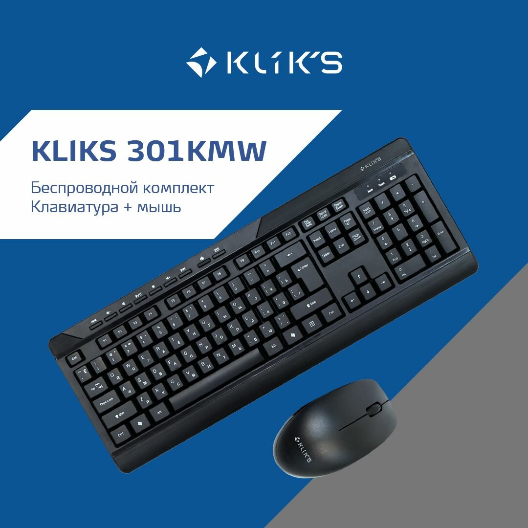 Клавиатура + мышь KLIKS 301KMW, беспроводная, USB, радиоканал, черный (LW-301KMW) информация:
