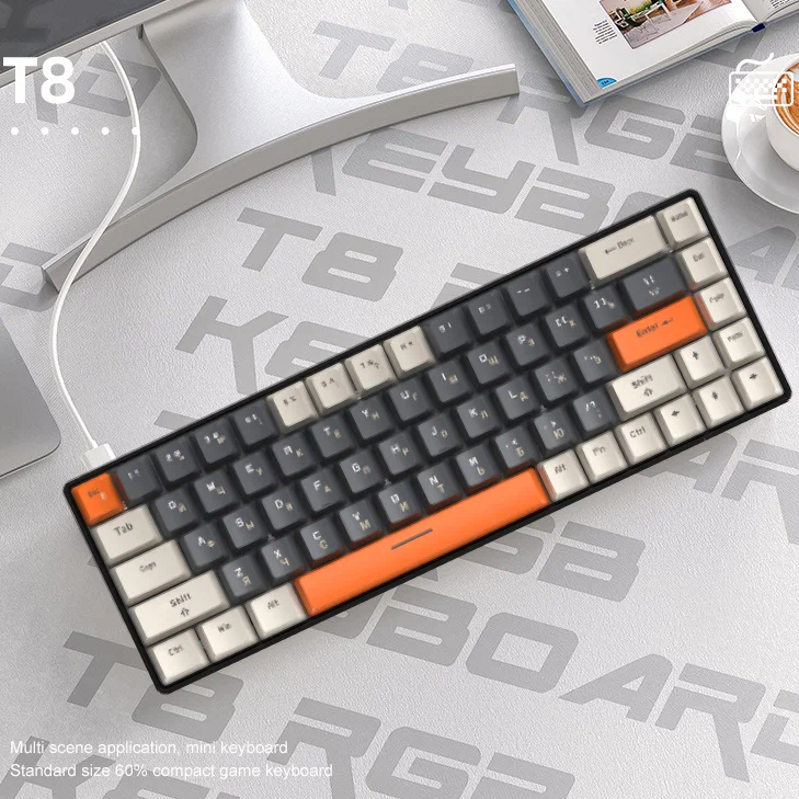 10 цен на Комплект мышь клавиатура механическая русская Т8 мышка игровая М8 с подсветкой проводная набор для компьютера ноутбука Gaming, game mouse keyboard