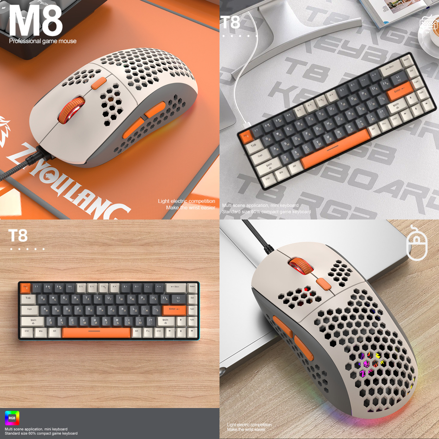 Комплект мышь клавиатура механическая русская Т8 мышка игровая М8 с подсветкой проводная набор для компьютера ноутбука Gaming, game mouse keyboard информация:
