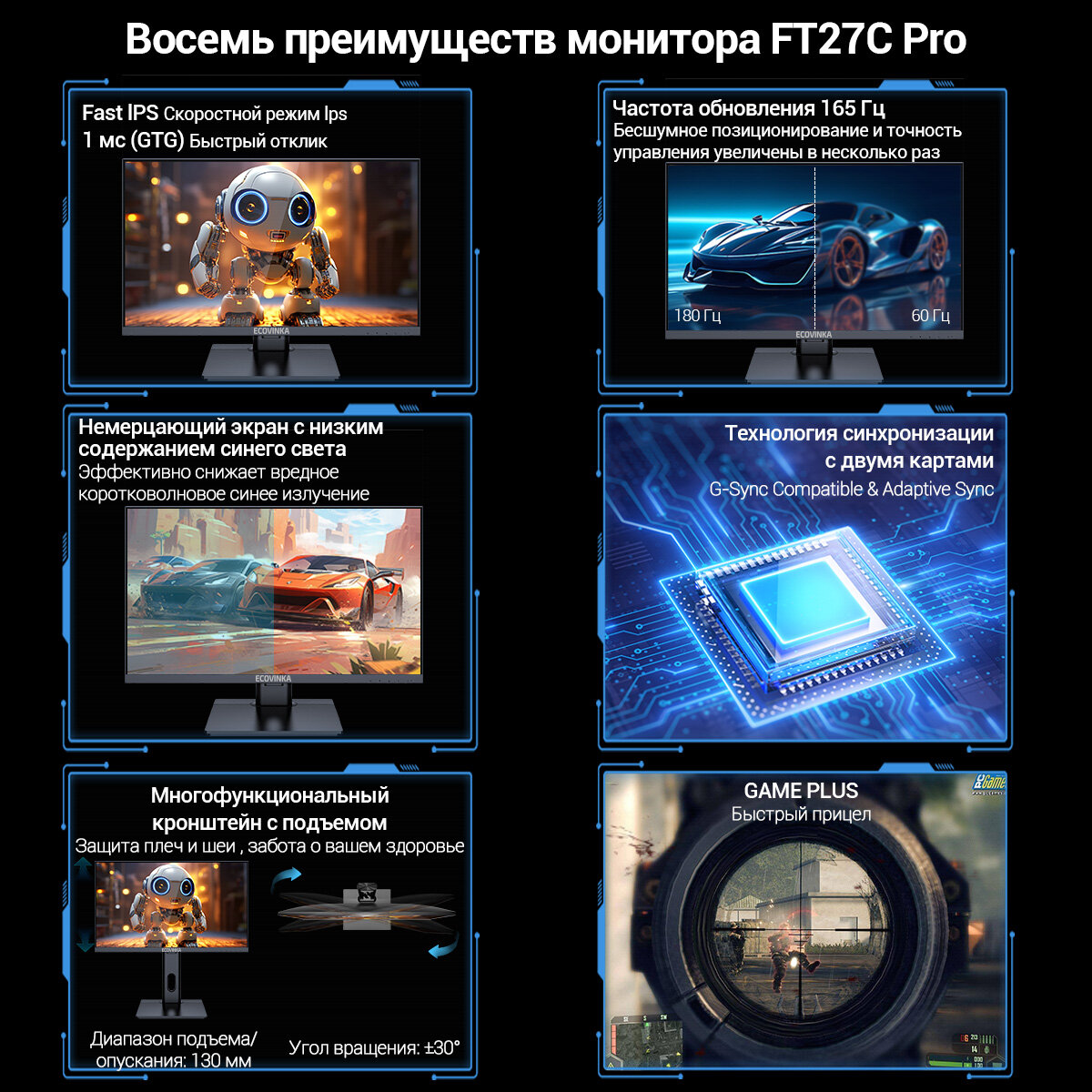 ECOVINKA Игровой монитор FT27C Pro 27" 2560x1440 2K+165Гц IPS информация: