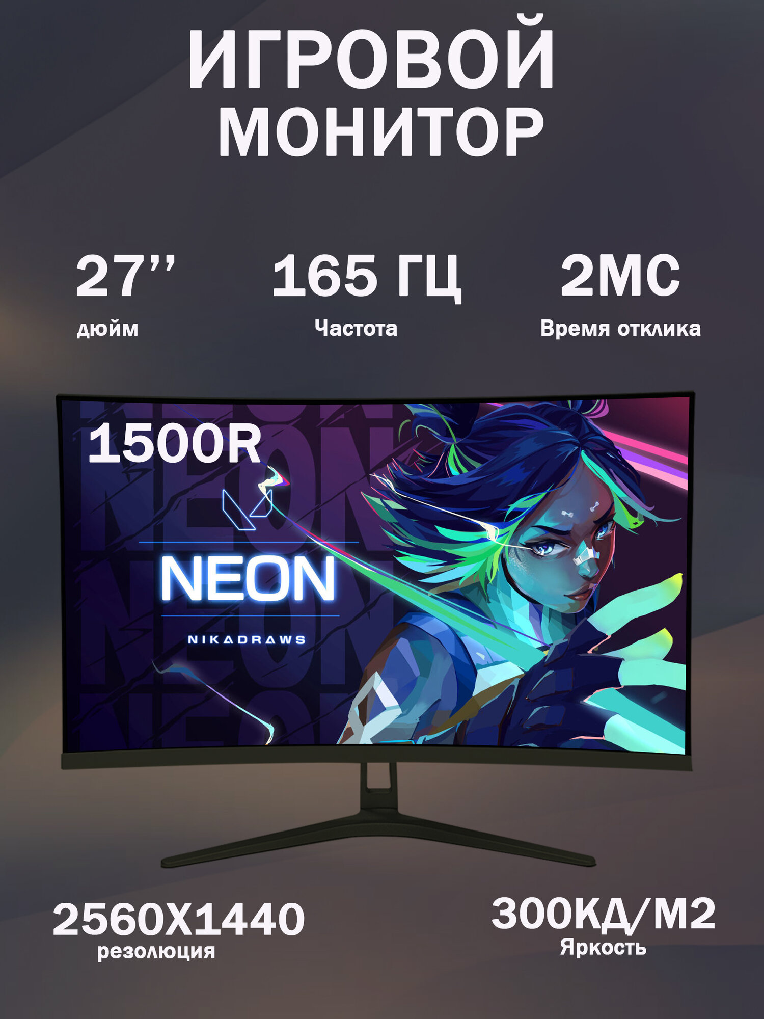 27-дюймовый игровой монитор, изогнутый дисплей, 2K165 Гц, удобный для глаз дисплей, Черный информация:
