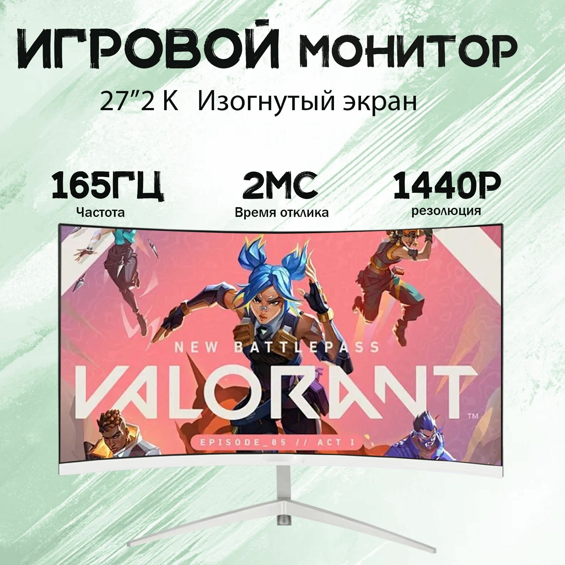 10 цен на 27-дюймовый игровой монитор, изогнутый дисплей, 2K165 Гц, Белый