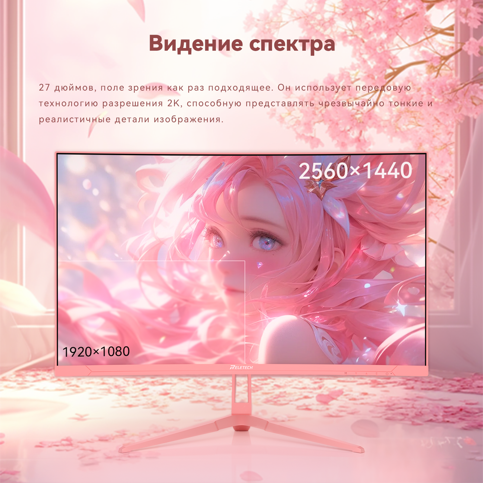 Монитор Reletech G27X Flex Pro Cotton Candy, 27", игровой, изогнутый, 2560x1440 QHD, 180 Гц, HDMIx2, DPx2, 1500R, Игровая RGB-подсветка информация:
