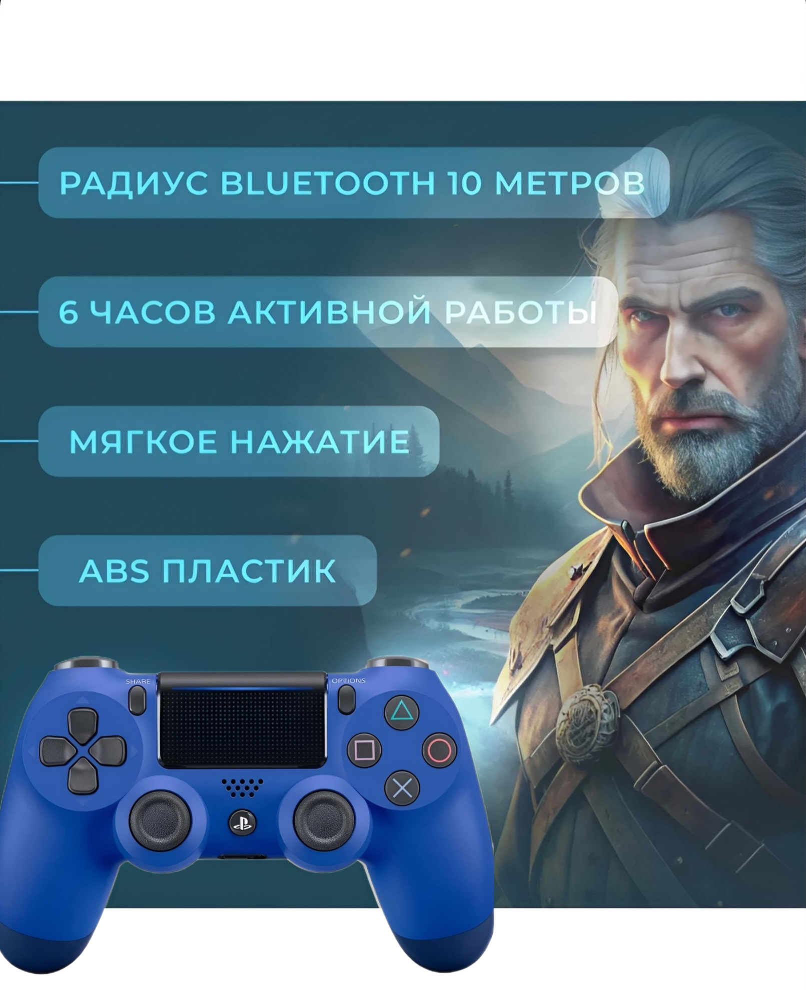 Джойстик / геймпад беспроводной для PS4, компьютера, телефона, ПК. Синий. информация: