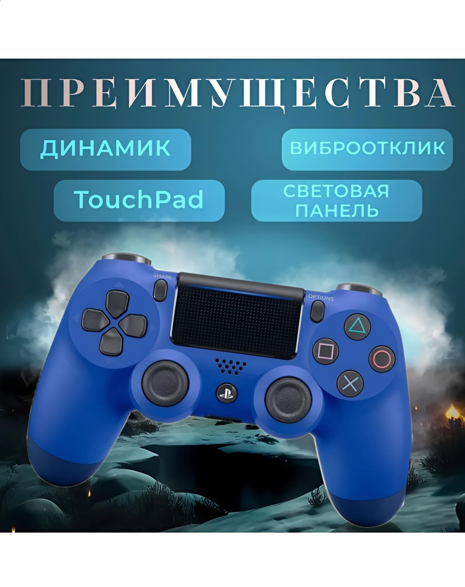 Беспроводной геймпад для PS4 с зарядным кабелем, Синий-Кристалл / Bluetooth / Джойстик для PS и ПК 1 990 ₽