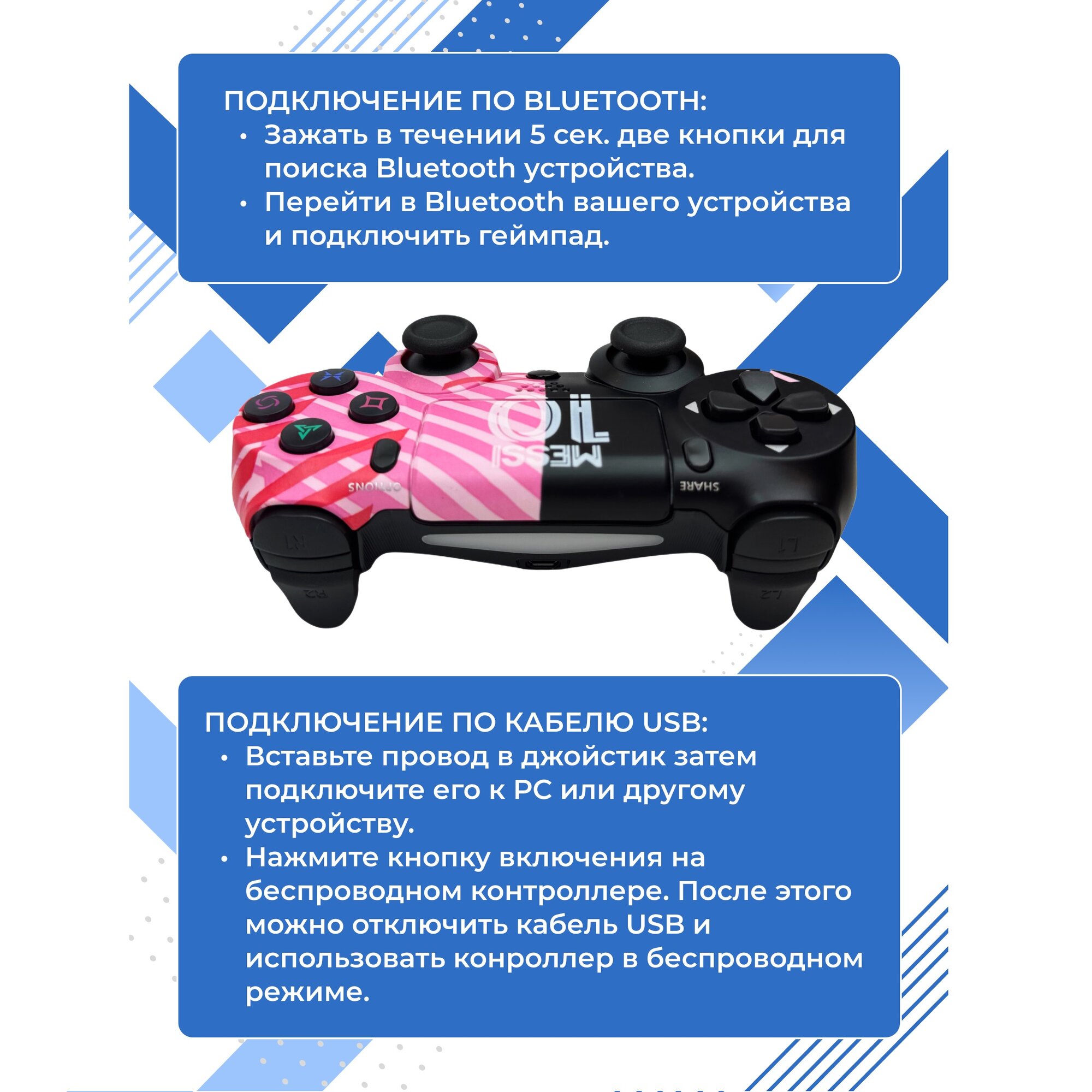 Геймпад джойстик для PS4, ПК, Android, iOS, беспроводной, Bluetooth, с гироскопом, черно-розовый MESSI информация: