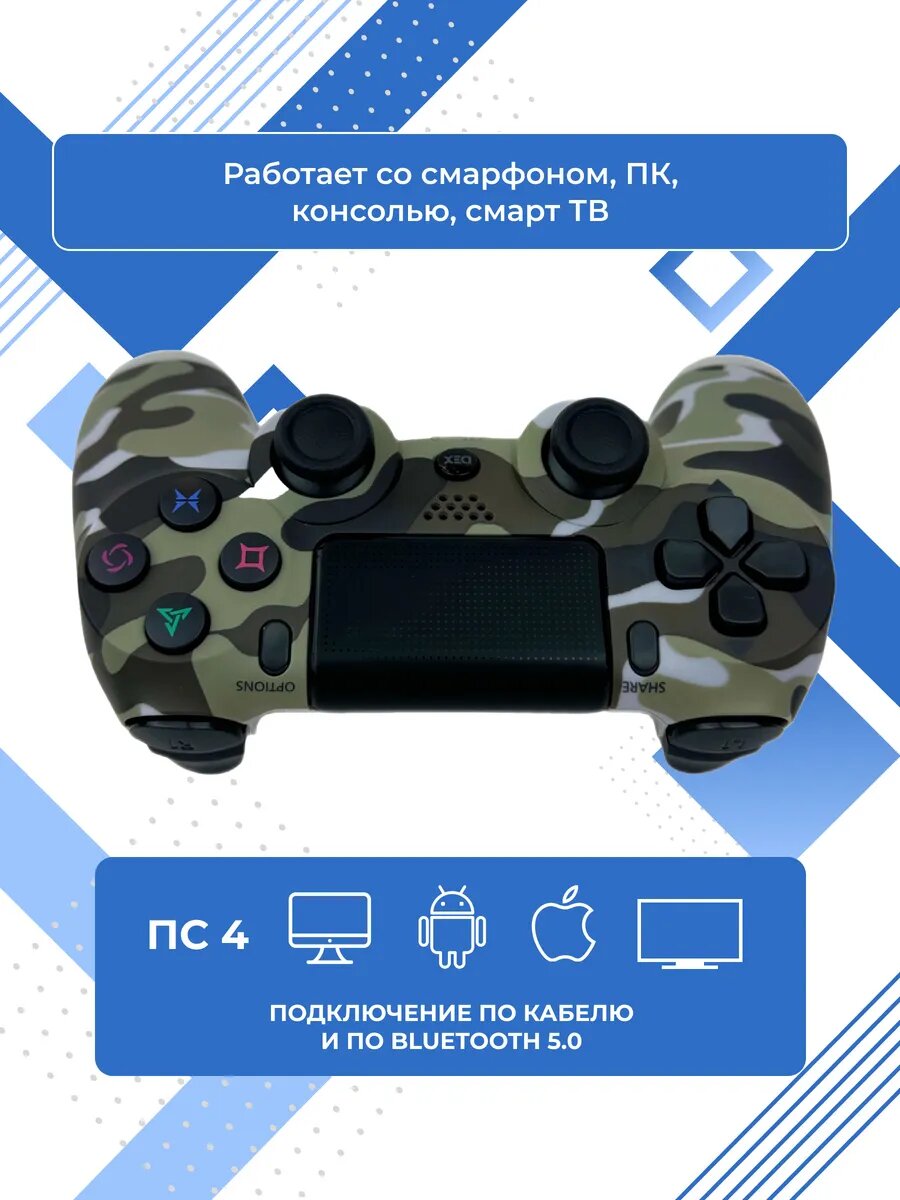 Беспроводной Bluetooth джойстик/геймпад для PS4, ПК, Android, iOS, виброотдача, серый камуфляж, информация: