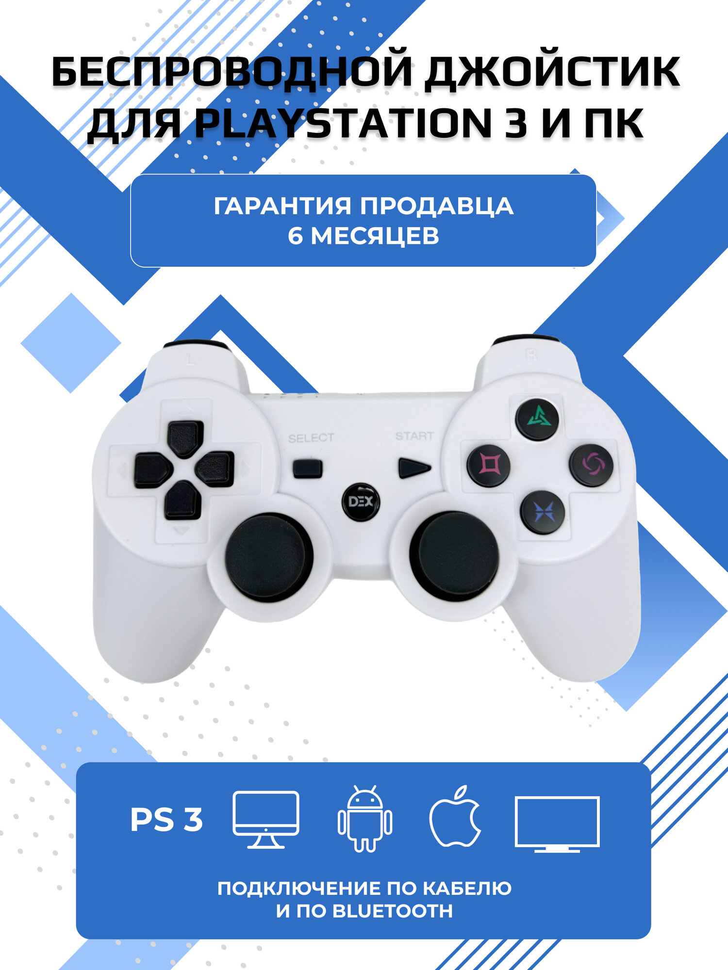 Джойстик для PS3/Android/ПК/iOS, контроллер для ПК, беспроводной, Bluetooth, с гироскопом, белый информация: