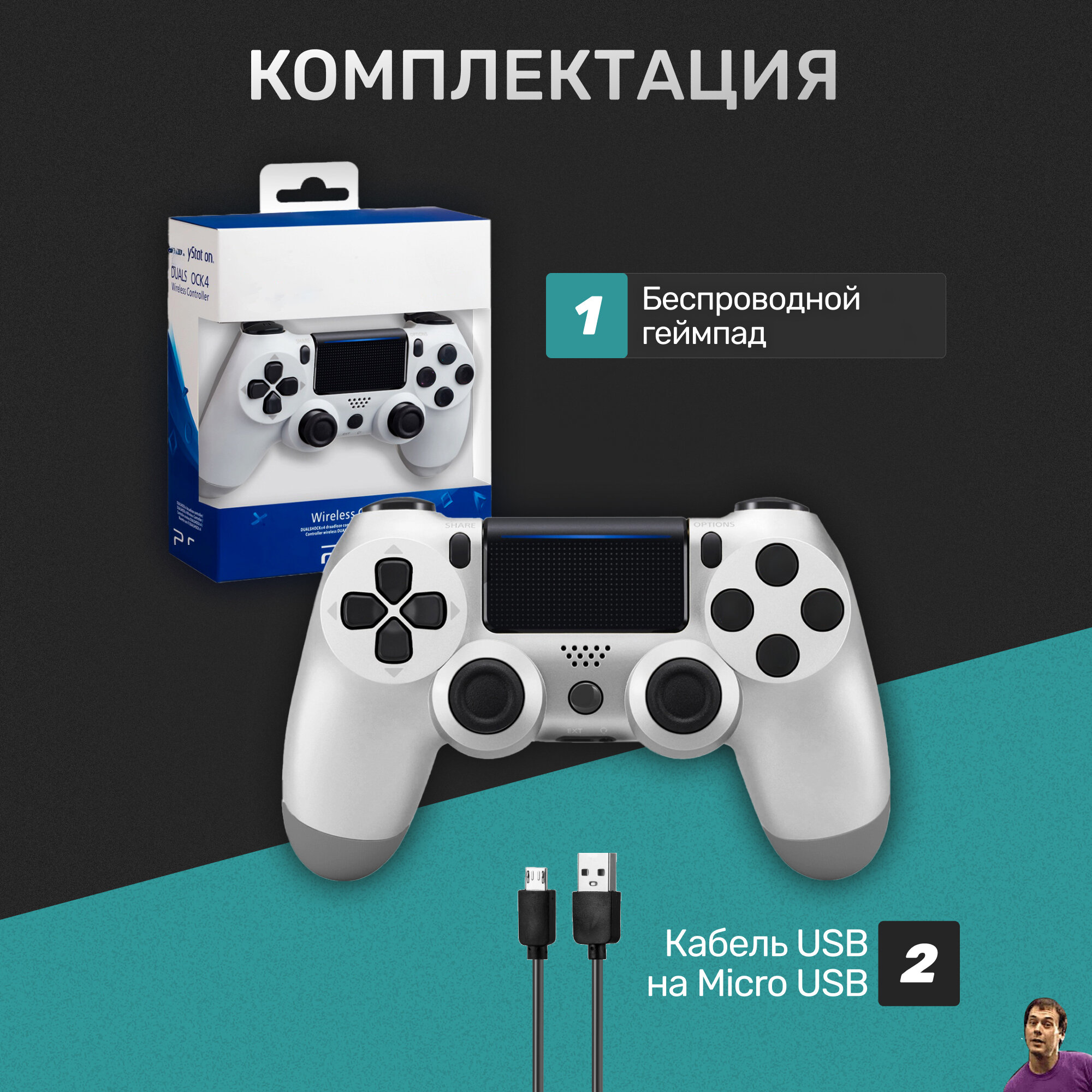 Беспроводной геймпад для PS4/ПК/телефона с Bluetooth, серебристый/silver 1 700 ₽