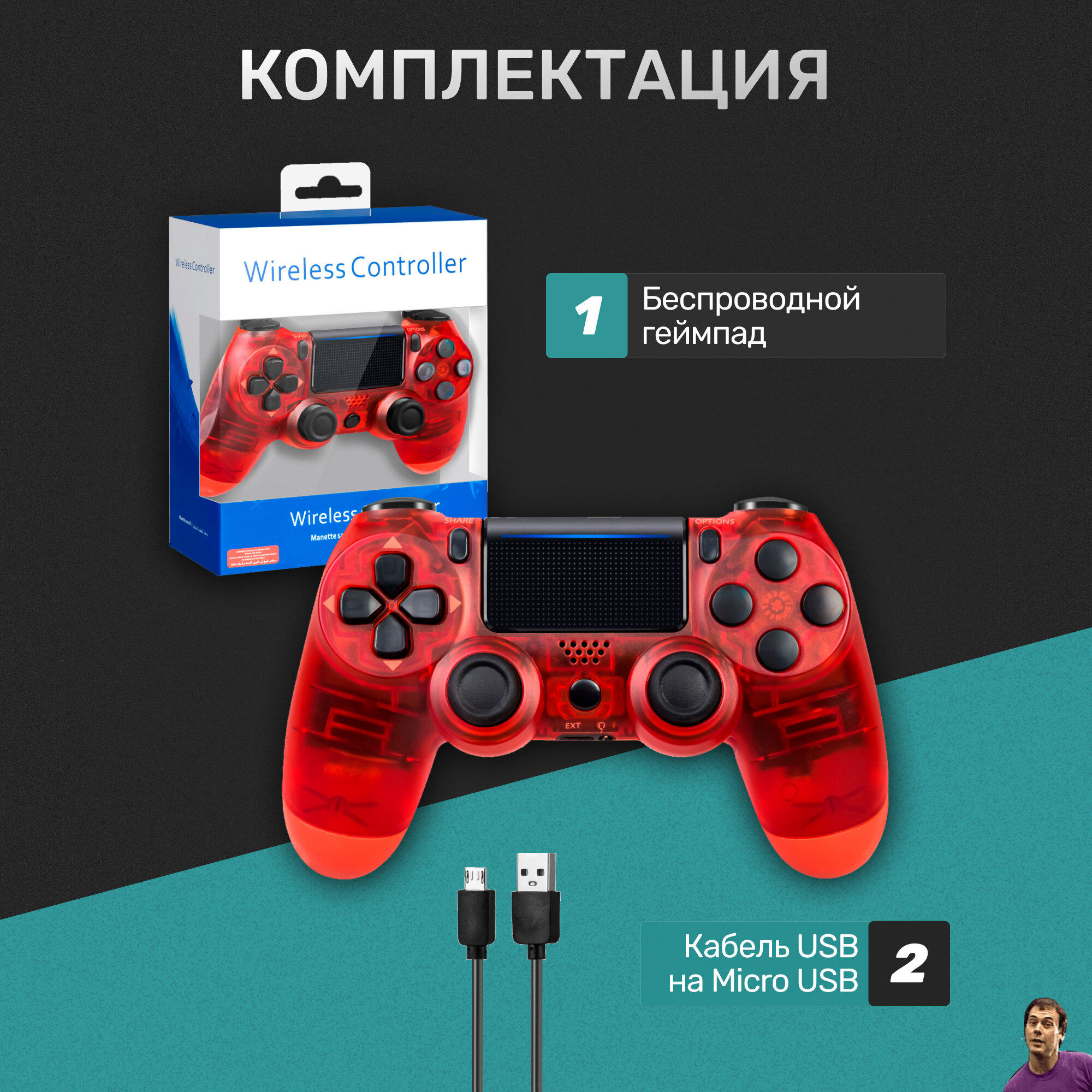 Беспроводной геймпад для PS4/ПК/телефона с Bluetooth, прозрачный красный информация: