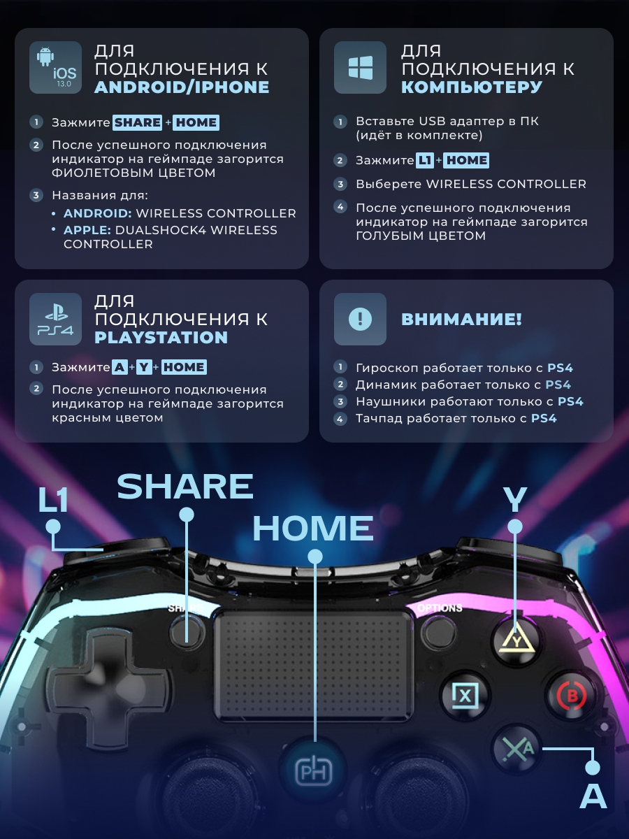 Беспроводной геймпад для телефона/ПК/PS3/PS4 с держателем и адаптером информация: