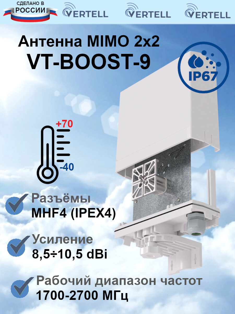 Отзывы на Антенна внешняя Vertell VT-BOOST-9 MIMO 2х2 9 dBi с размещением модема или роутера, герметичный корпус