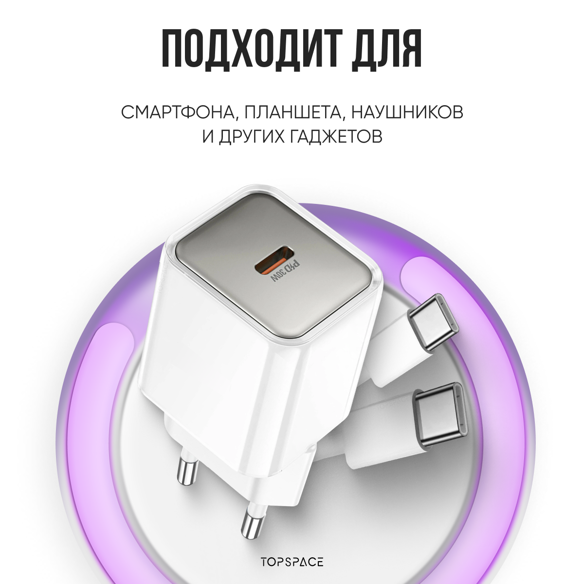 10 цен на Блок питания белый 30W + кабель Type-C / Type-C до 60W 1 метр