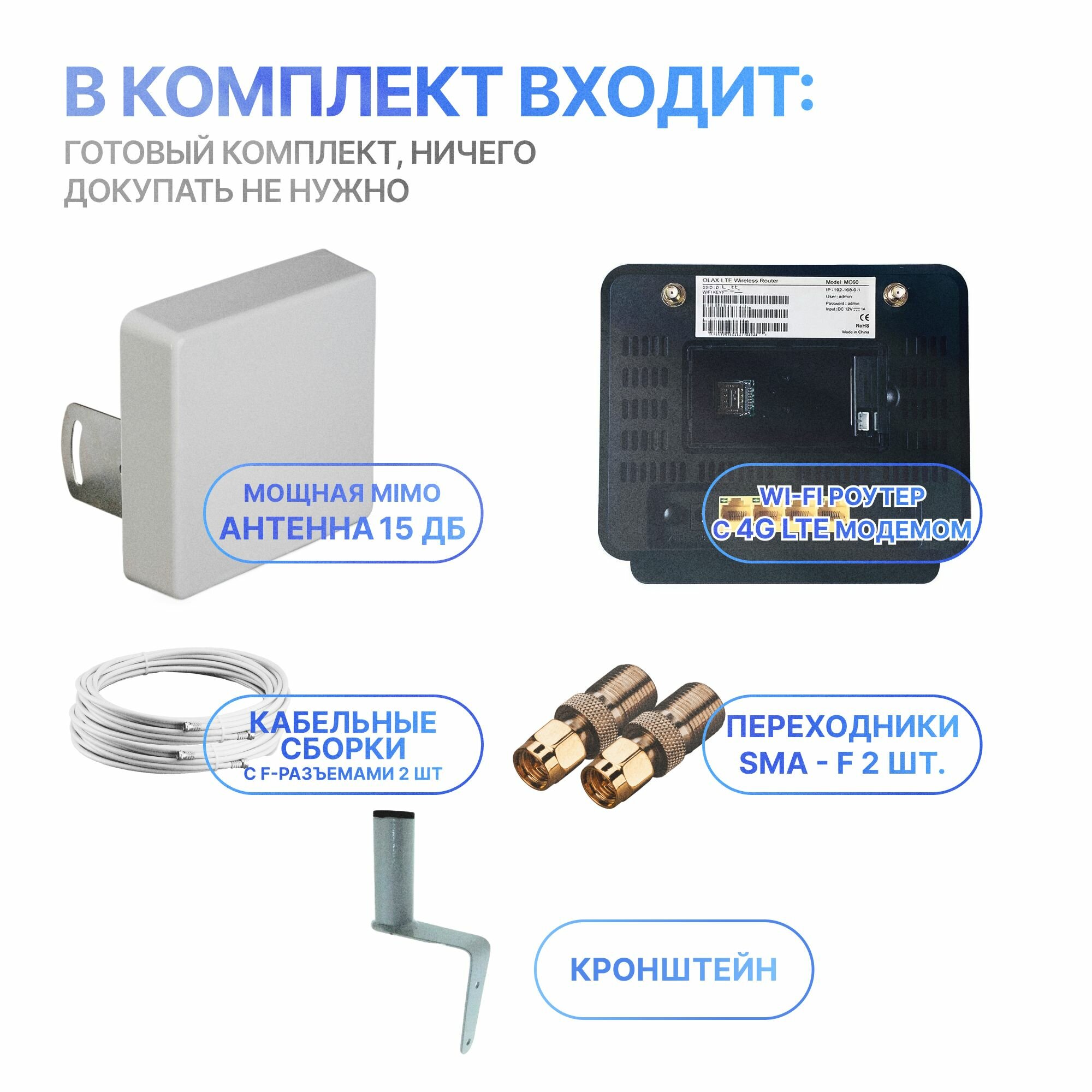 10 цен на Комплект для приема Интернета с 3G/4G роутером и мощной антенной до 10 км от вышки!