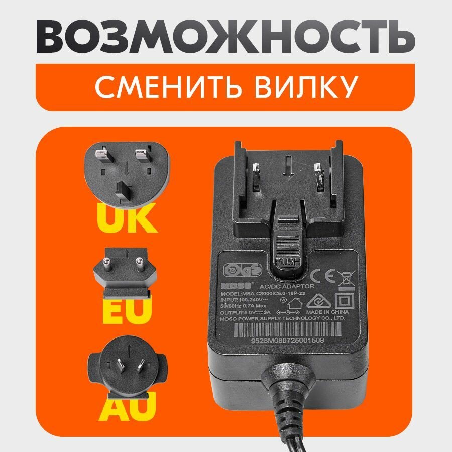 Отзывы на Блок питания/адаптер универсальный 15ВТ/5В/3А MSA-C3000 5.5x2.1мм для модема (wi-fi роутера), тв приставок (ресивера) тд