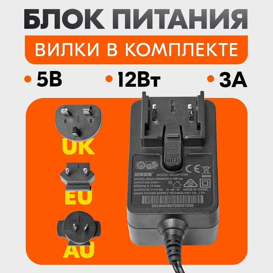 Блок питания/адаптер универсальный 15ВТ/5В/3А MSA-C3000 5.5x2.1мм для модема (wi-fi роутера), тв приставок (ресивера) тд информация: