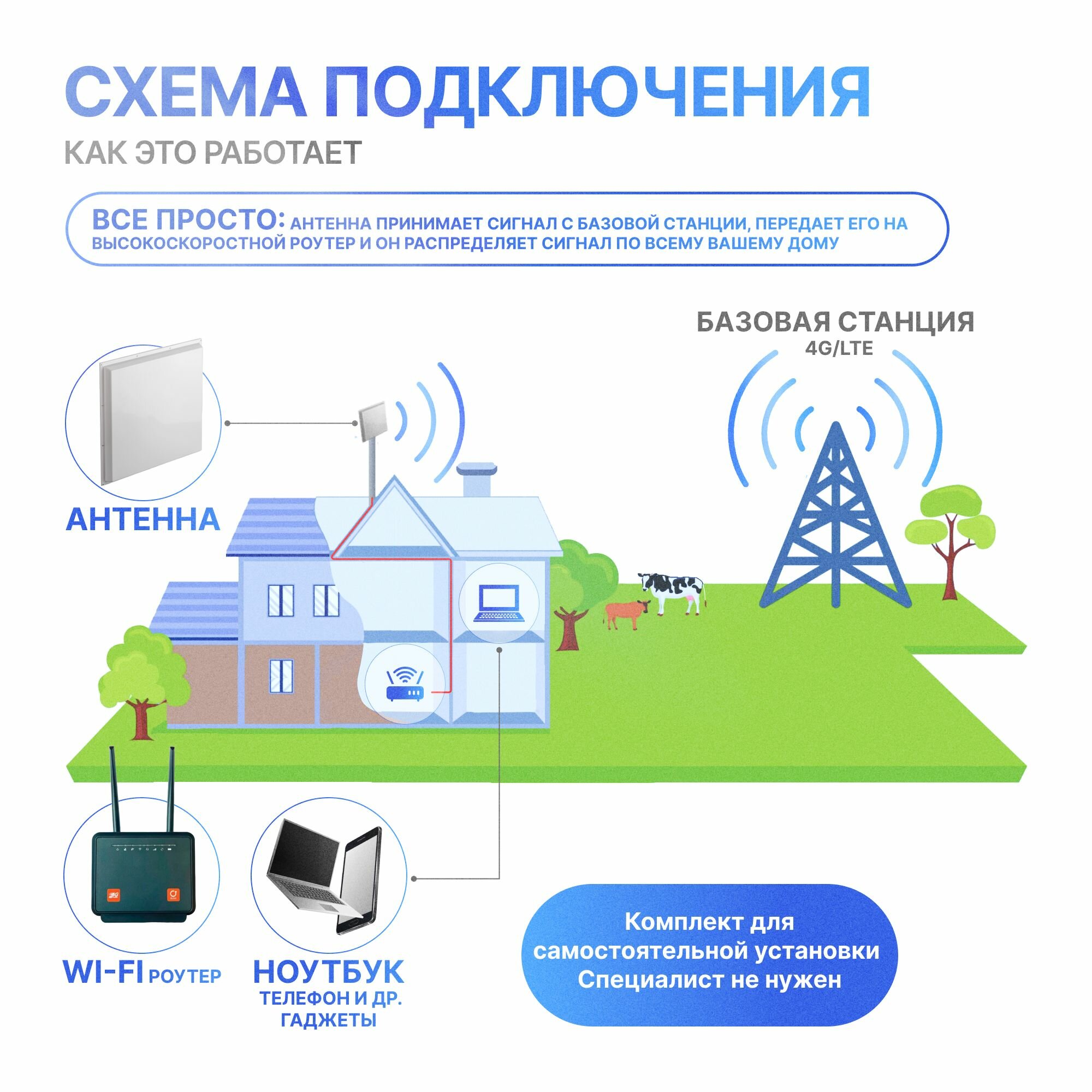 Отзывы на Комплект для приема Интернета с 3G/4G LTE WiFi роутером и мощной антенной до 17 км от вышки!