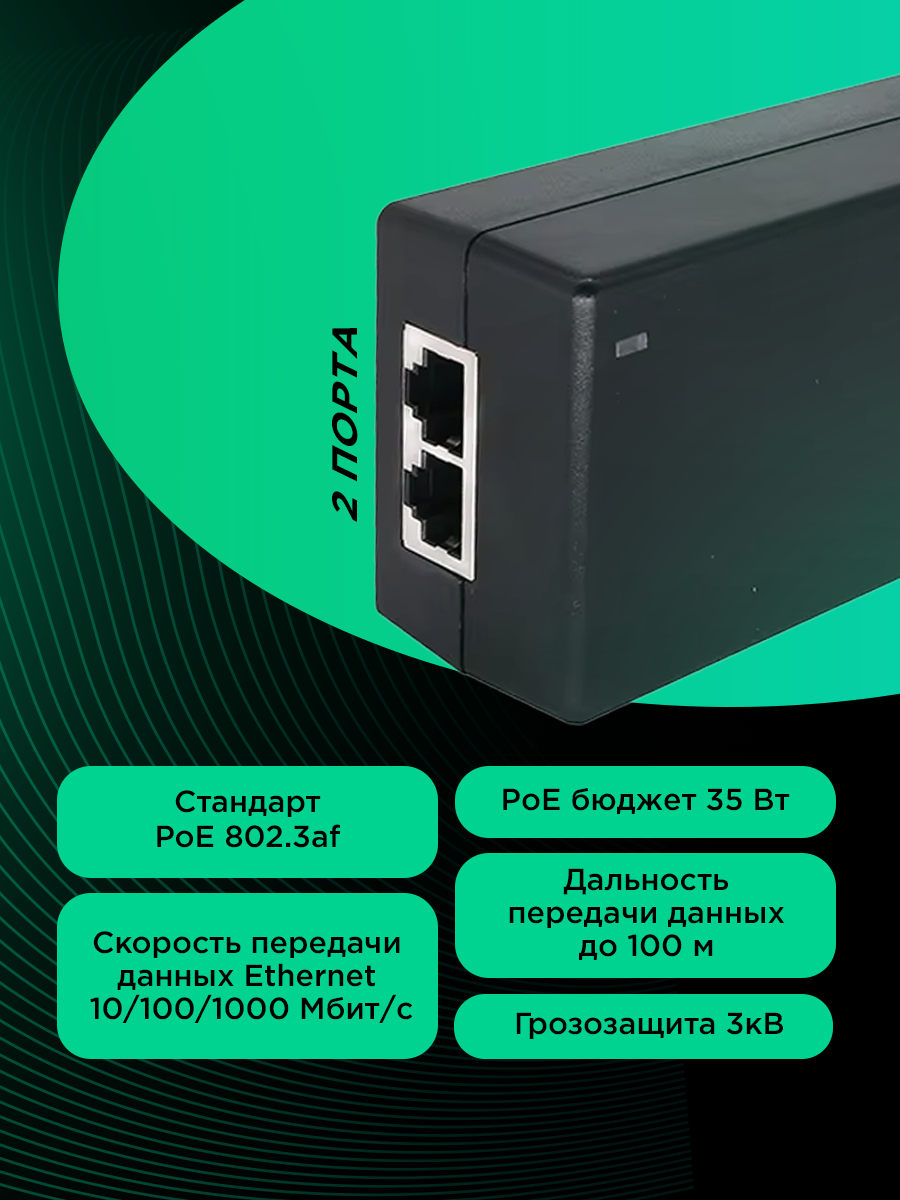 PoE-инжектор (35 Вт) RVi-1NPI301. Оригинал. Для Ip камер, внутренний. информация: