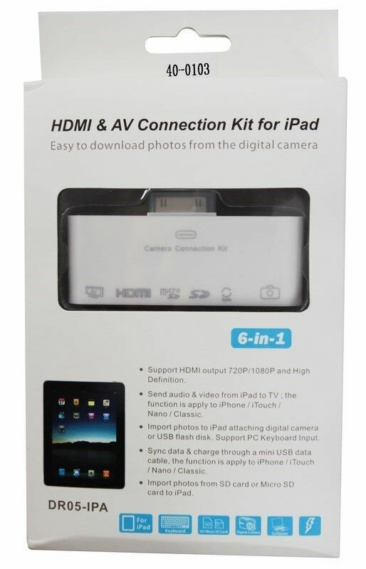 10 цен на AV адаптер 6 в 1 для iPhone 4/4S на HDMI, USB, microSD, SD, 3.5 мм, microUSB