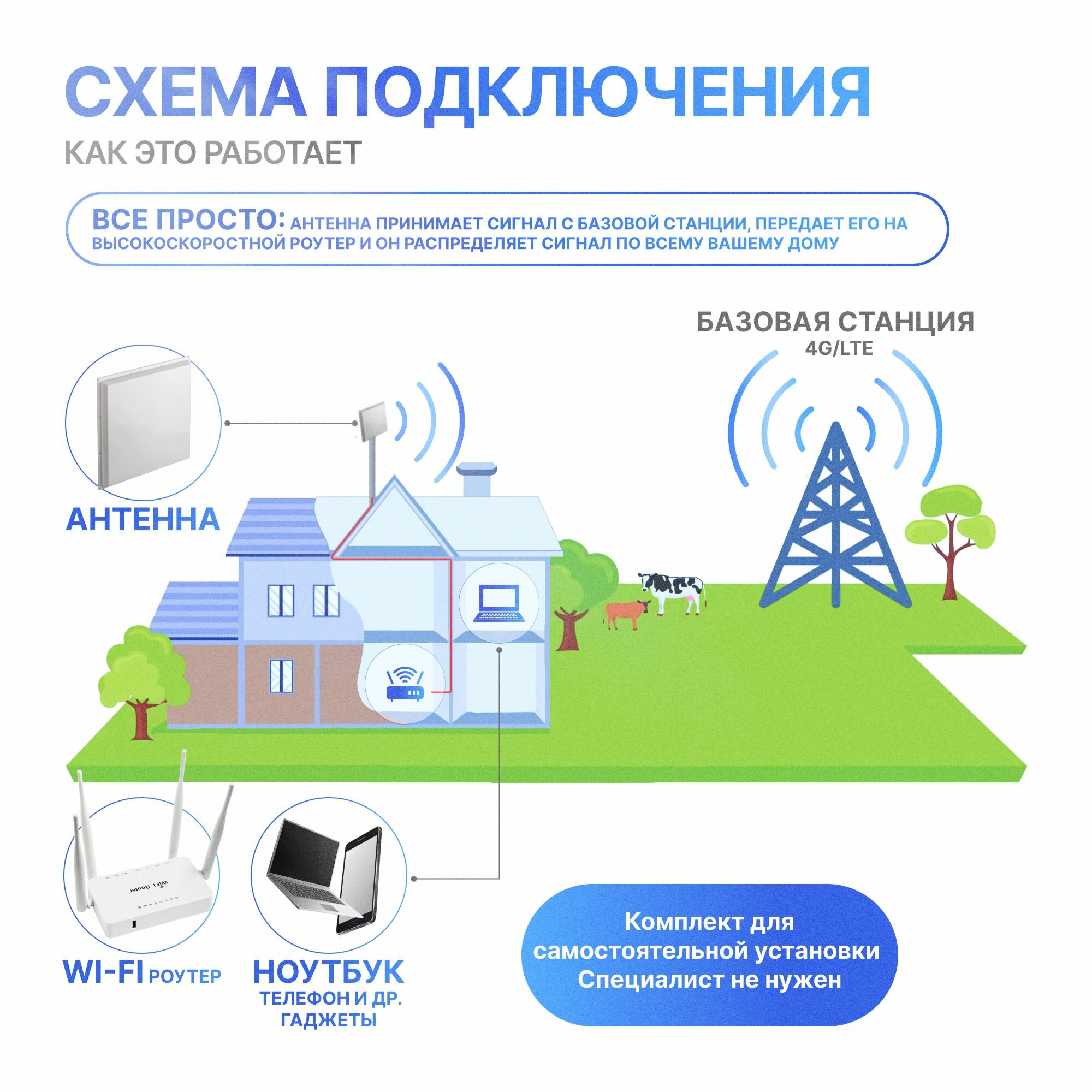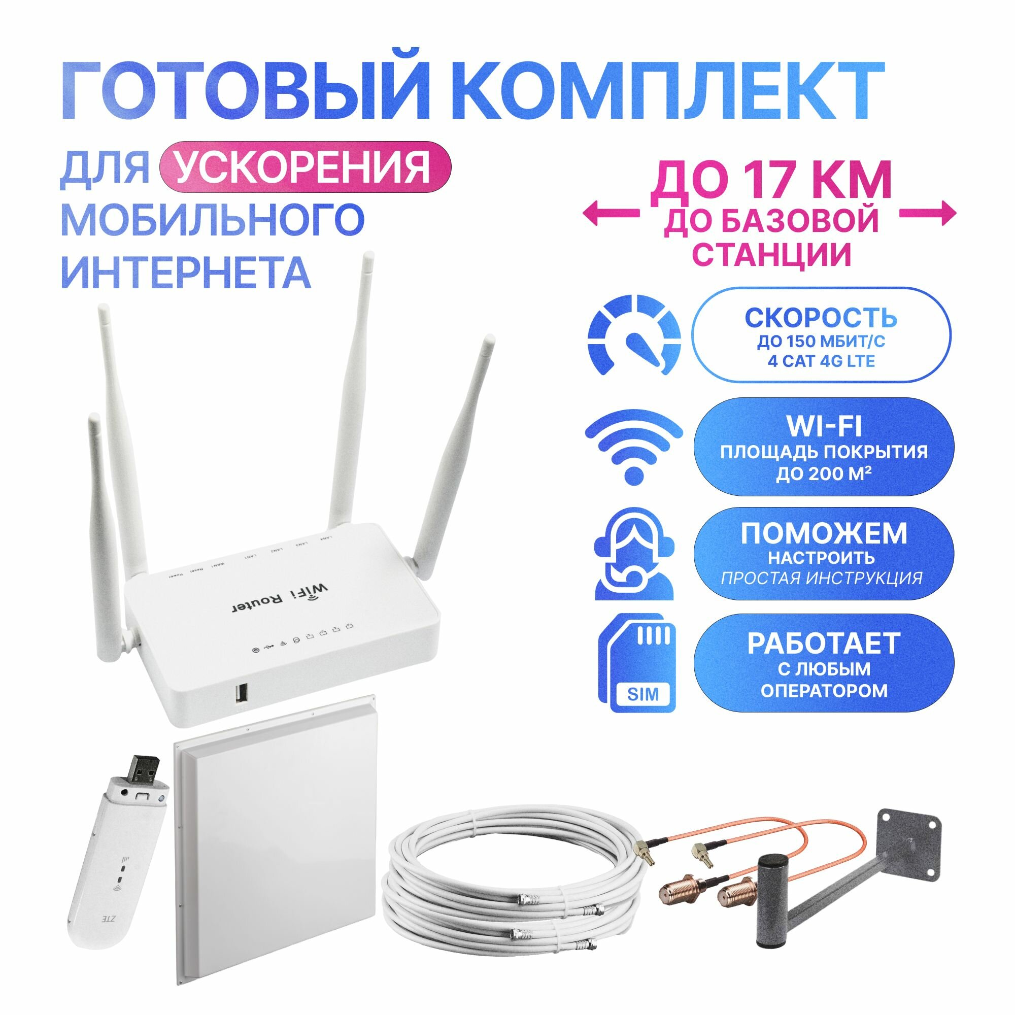 Отзывы на Супермощный Комплект Интернет на дачу 3G/4G LTE с антенной, модемом и WIFI роутером, 20км до вышки!