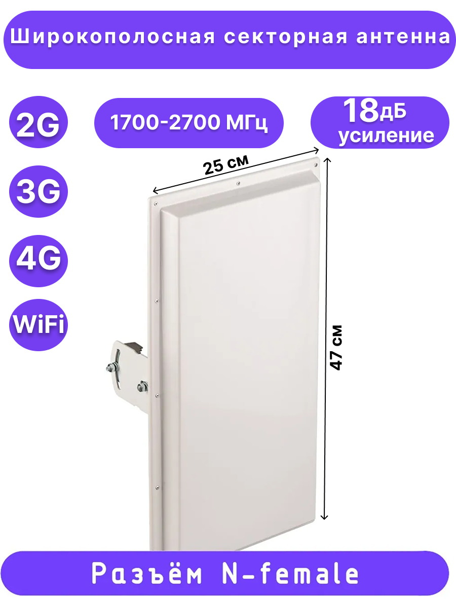 Антенна широкополосная секторная 2G/3G/4G, 18 дБ, KROKS KP18-1700/2700 (N-female) информация: