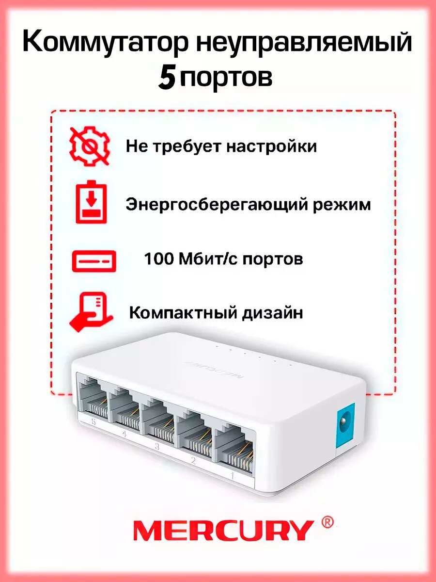 10 цен на Коммутатор 5 портов, свитч RJ45 неуправляемый