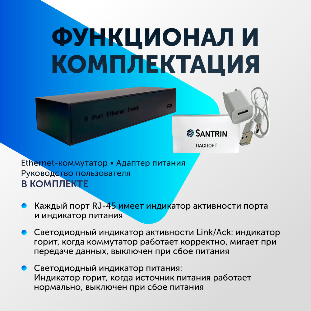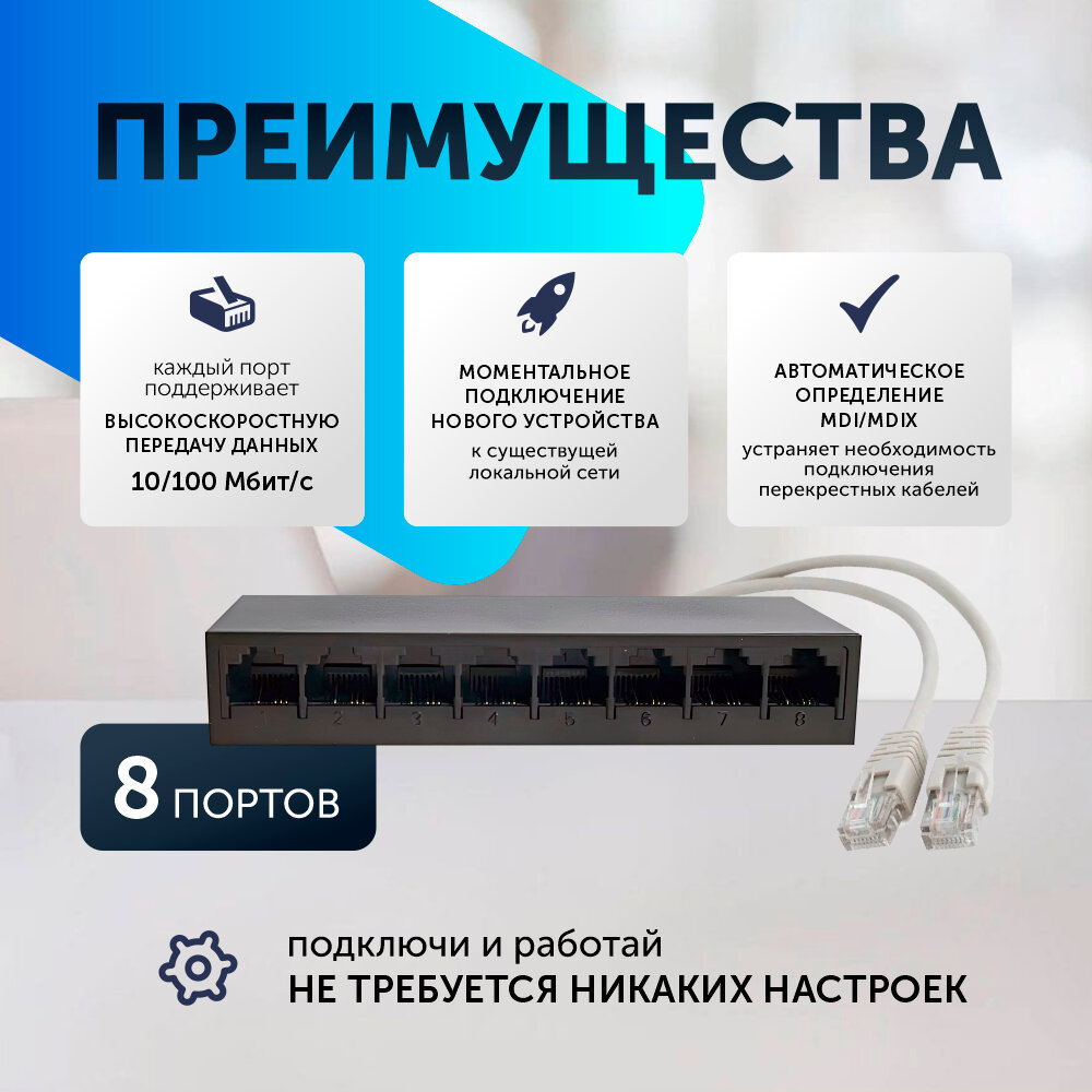 Коммутатор неуправляемый (свитч) 8 портов 10/100 Мбит/с RJ-45 информация:
