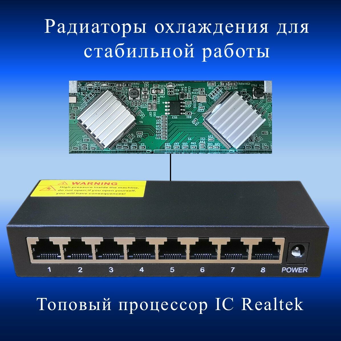 Отзывы на Коммутатор сетевой 8 портов, скорость портов 10/100/1000 Мбит/с, питание 12В 1А, металлический корпус
