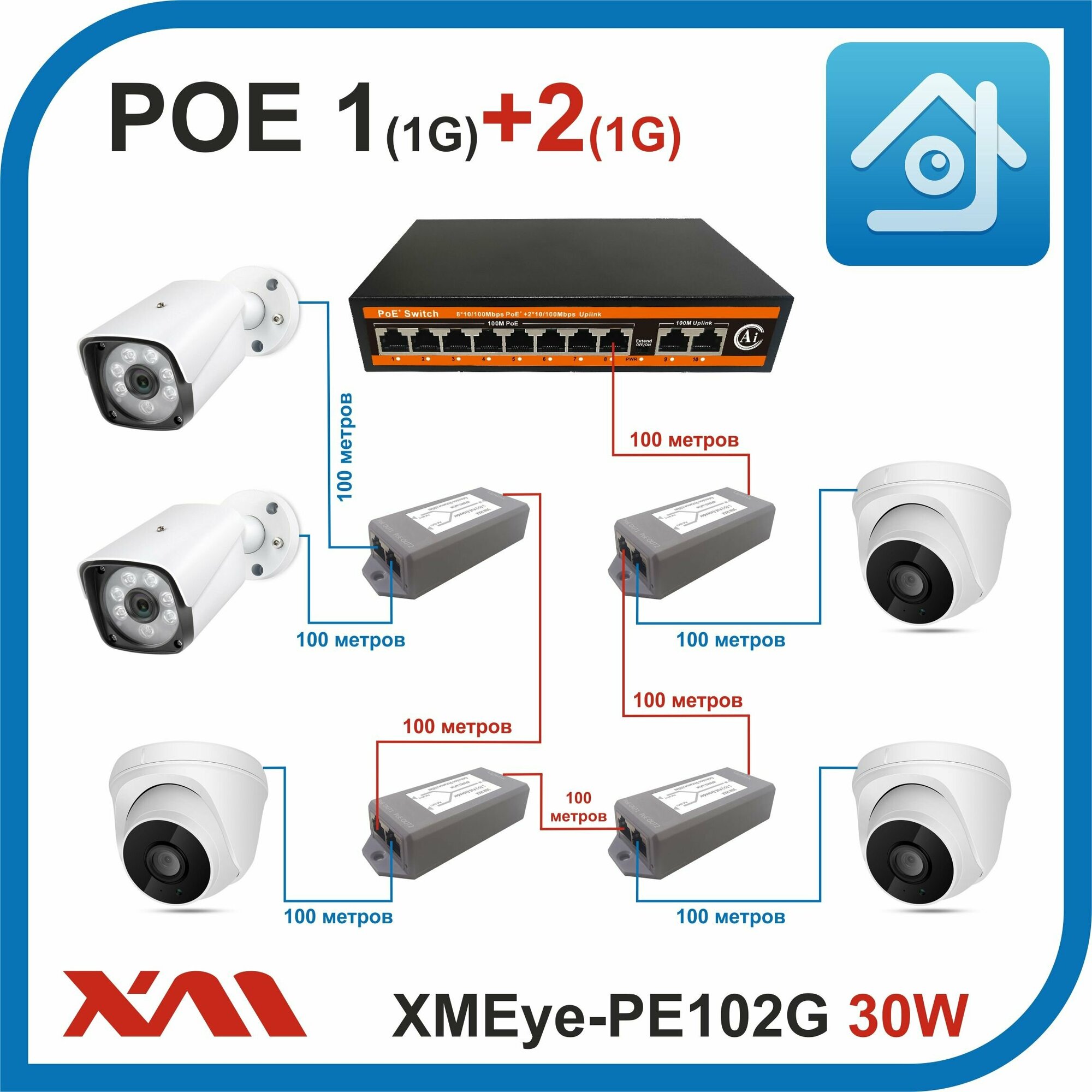 10 цен на XMEye-PE102G. 30W. Extender (Экстендер) POE на 1+2 порта GIGABIT (10/100/1000M) для внутренней установки.