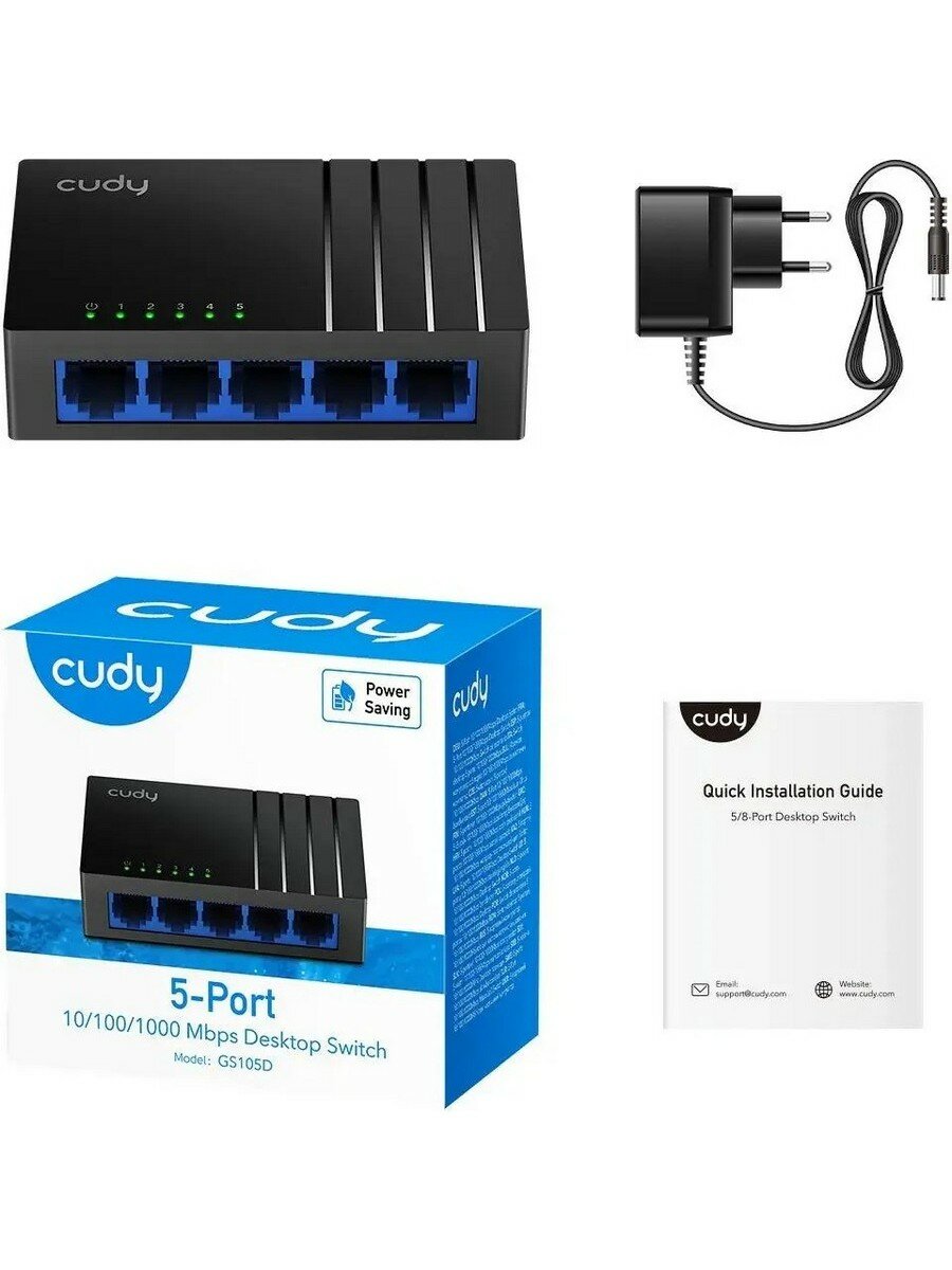 Коммутатор неуправляемый Cudy GS105D, 5 портов RJ45 10/100/1000 Мбит/с, пластиковый корпус (GS105D) информация: