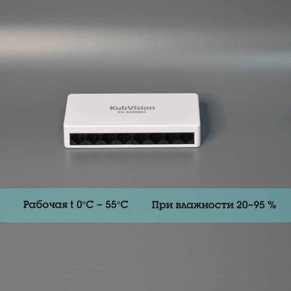 Коммутатор "KubVision KV-S4008ES" - 8-портовый, белого цвета информация: