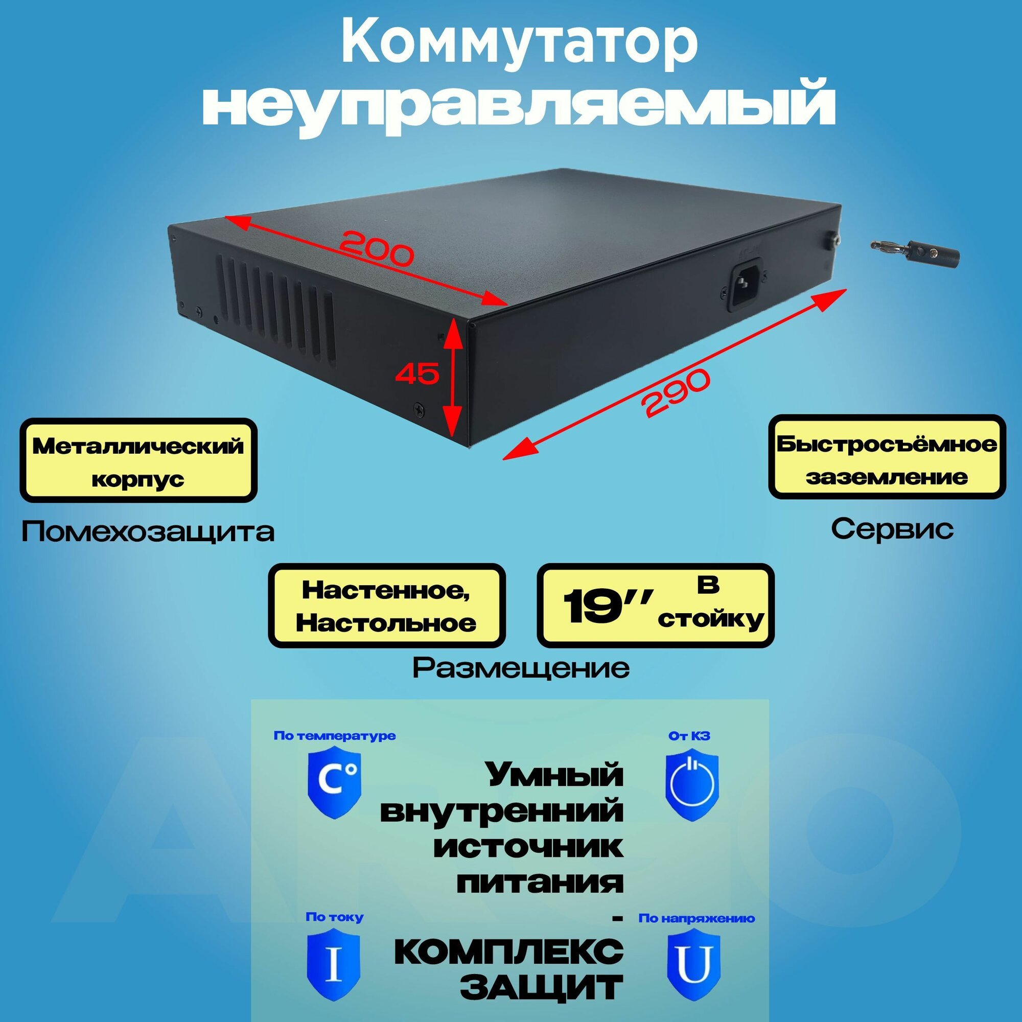 10 цен на Коммутатор POE 16хPOE(100Мбит) + 2хEthernet(1ГБит-uplink) + 1хОпт. SFP(1ГБит-uplink) 300Вт Черный