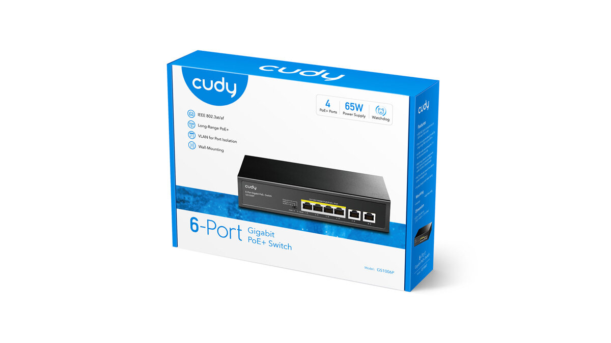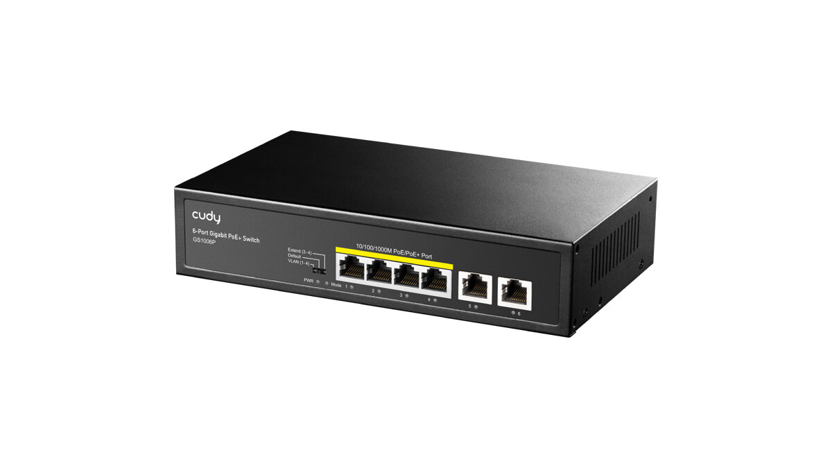 10 цен на Коммутатор CUDY GS1006P черный, неуправляемый, 6-портовый с 4 каналами РоЕ до 65 Вт