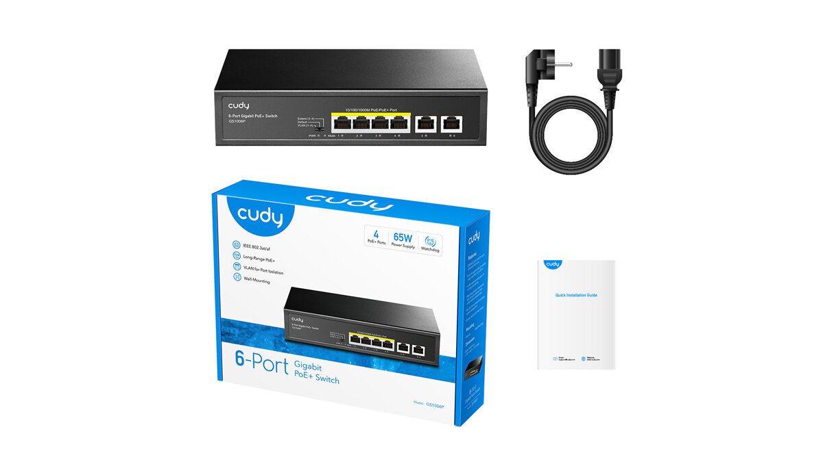 Отзывы на Коммутатор CUDY GS1006P черный, неуправляемый, 6-портовый с 4 каналами РоЕ до 65 Вт