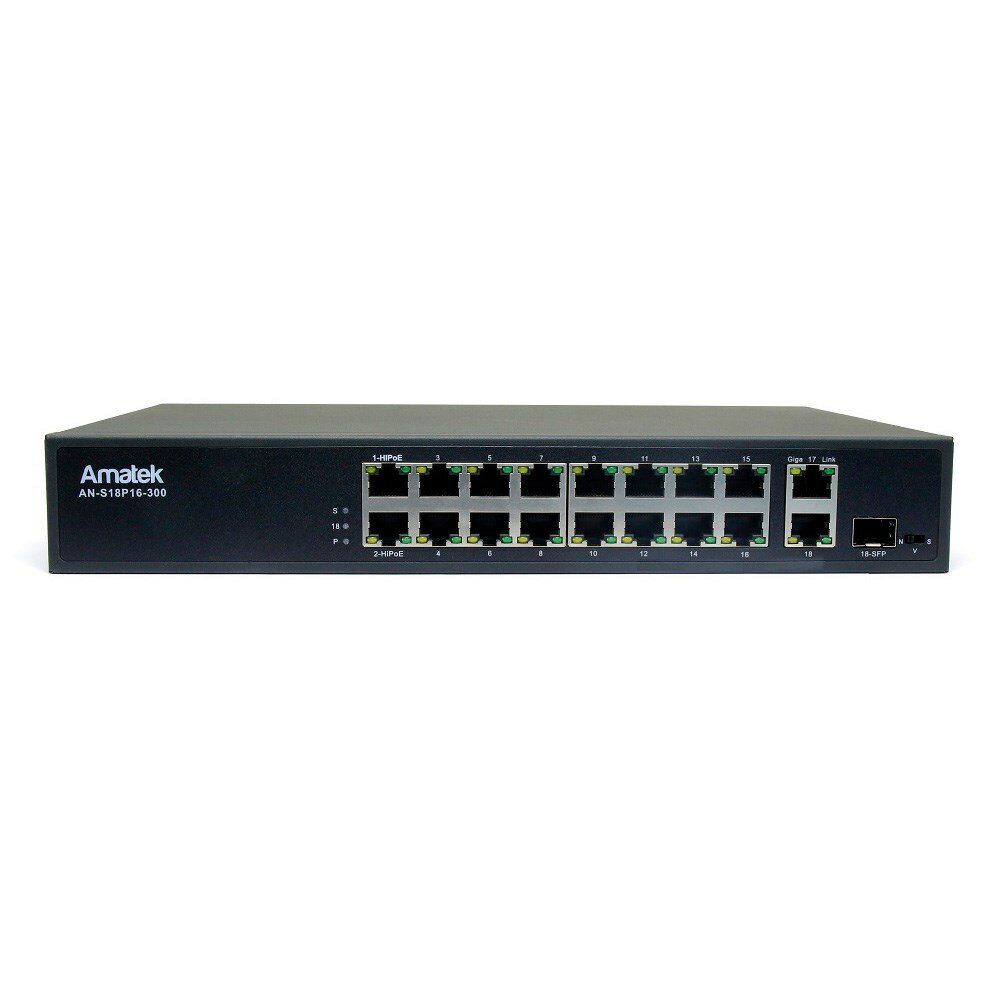 AN-S18P16-300 Amatek 18-портовый 100/1000 Мбит/с коммутатор с PoE до 300Вт информация: