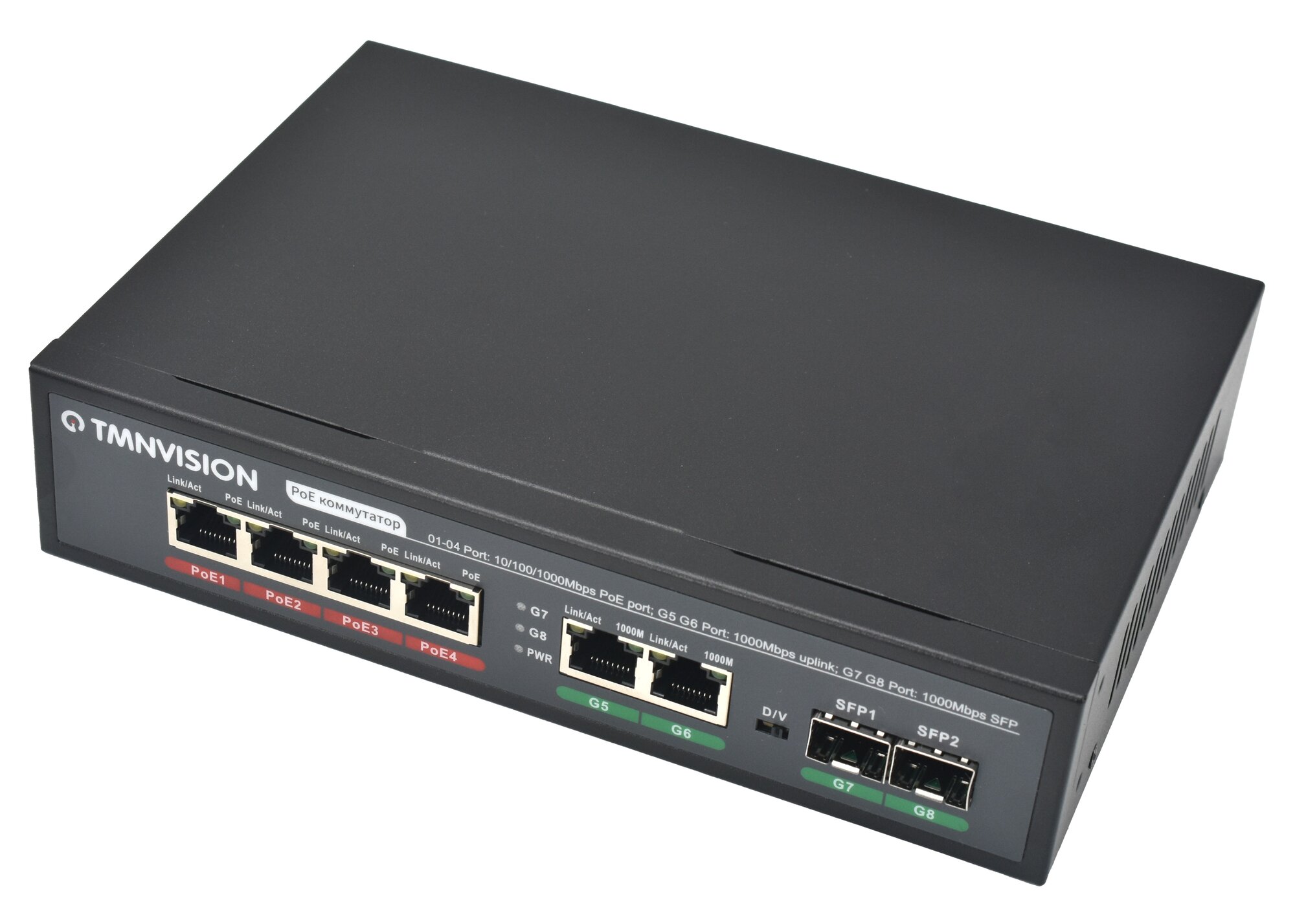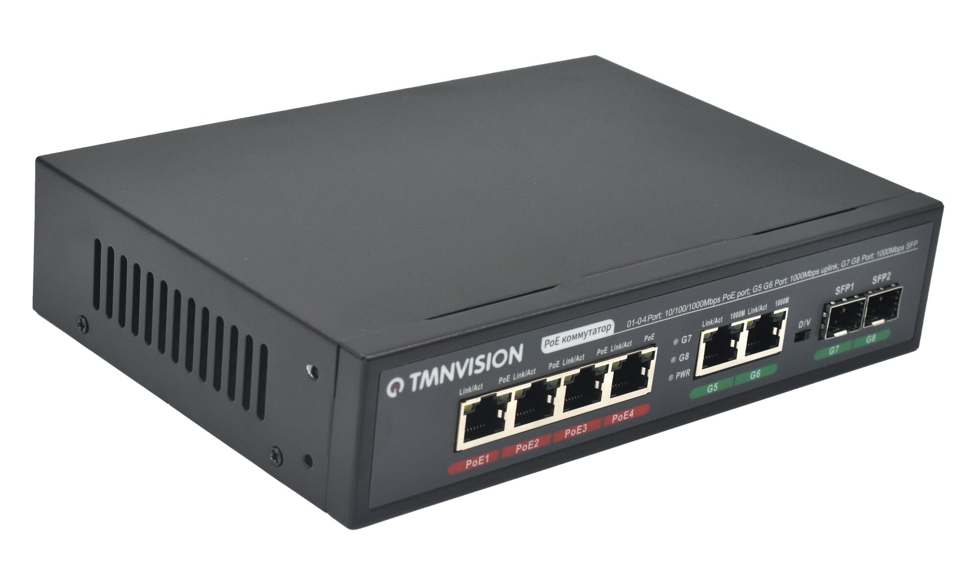 10 цен на Коммутатор "Tmnvision" TM-7204, 6 LAN-портов, PoE, 10-100-1000 Mbps