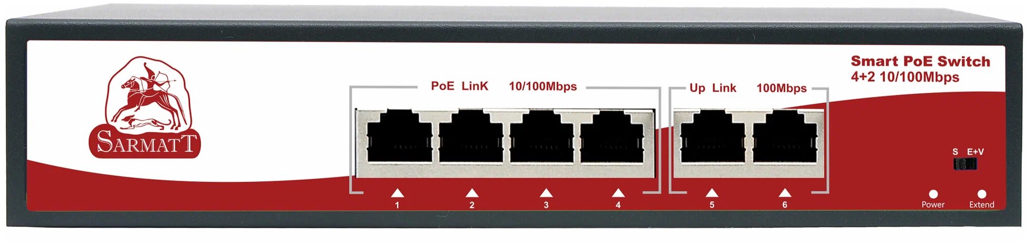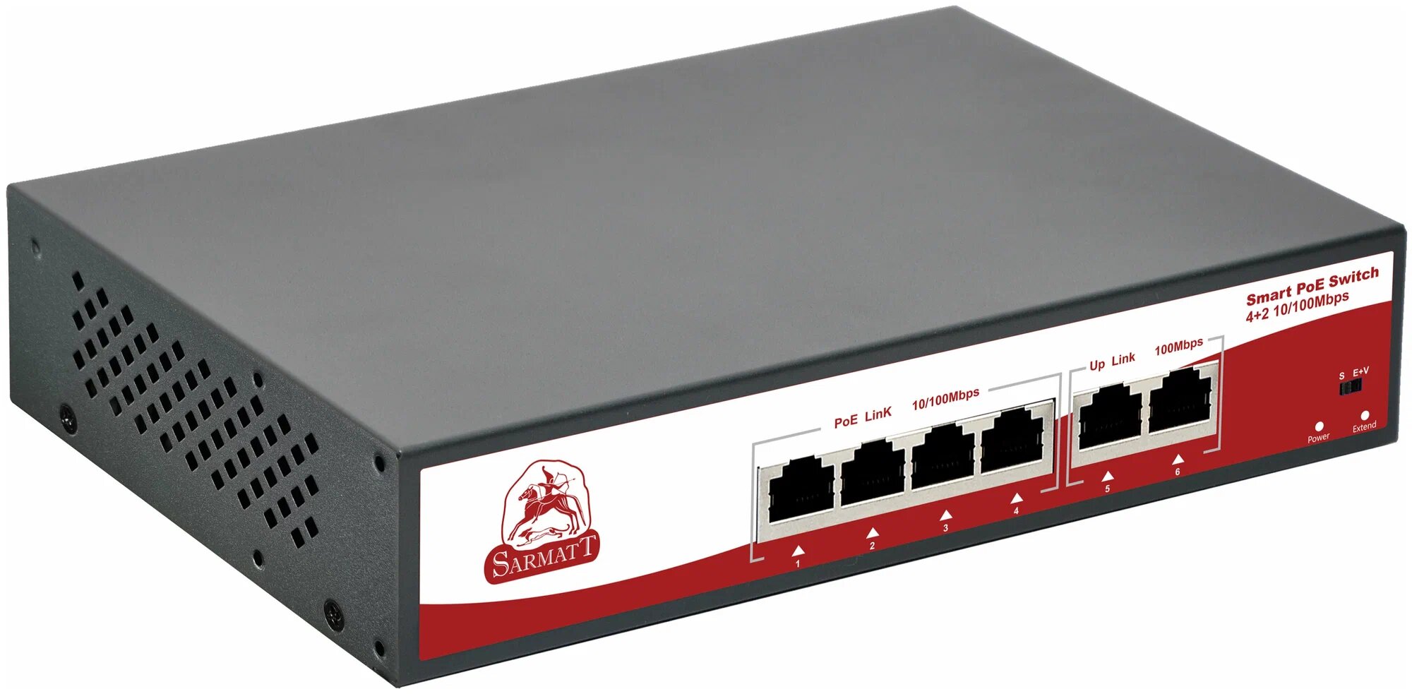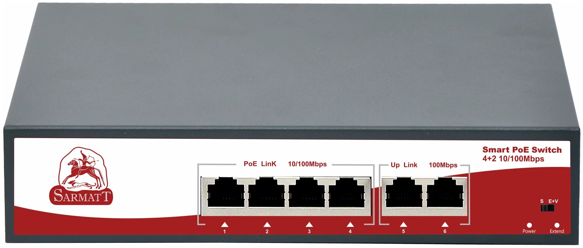 Коммутатор Sarmatt SR-PS0420FBL, 6 портов, PoE, до 250 м, установка в стойку информация: