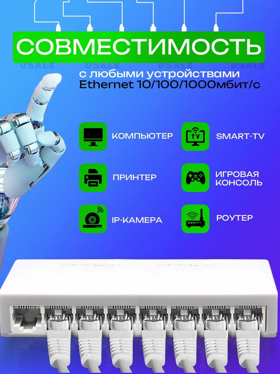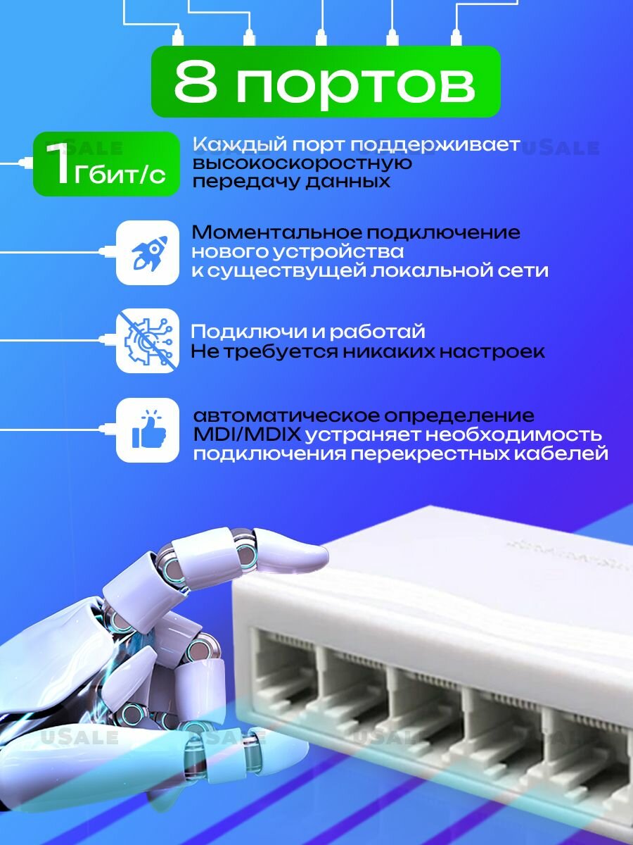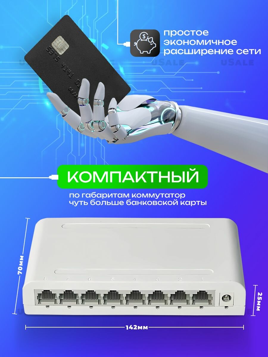 10 цен на Коммутатор 8 портовый 1Гбит. 20гбит общая пропускная спобосность