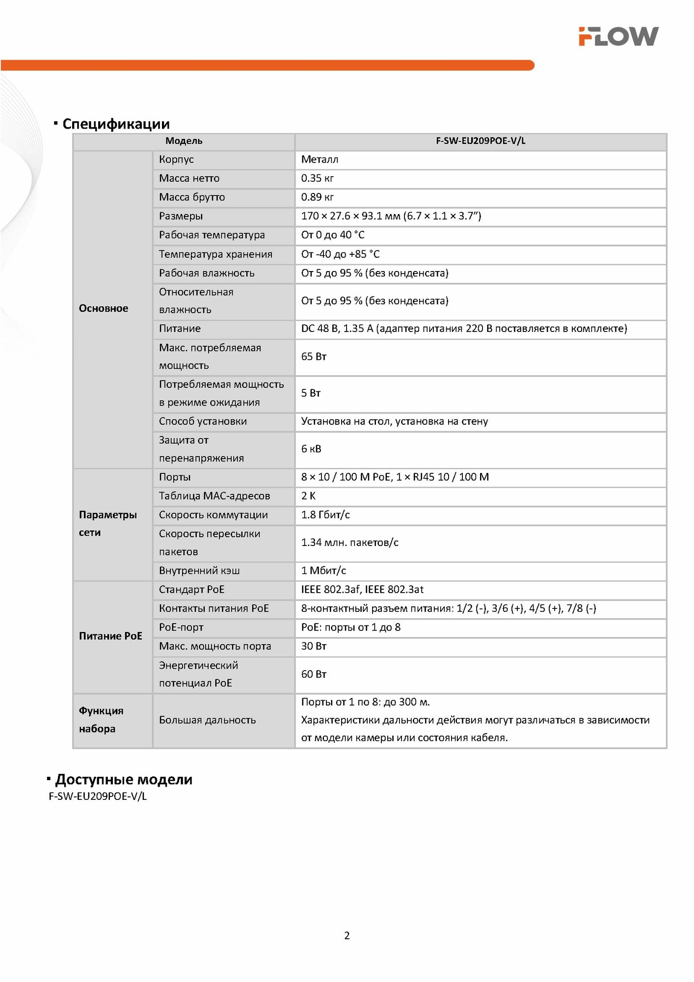 Коммутатор iFLOW F-SW-EU209POE-V/L информация: