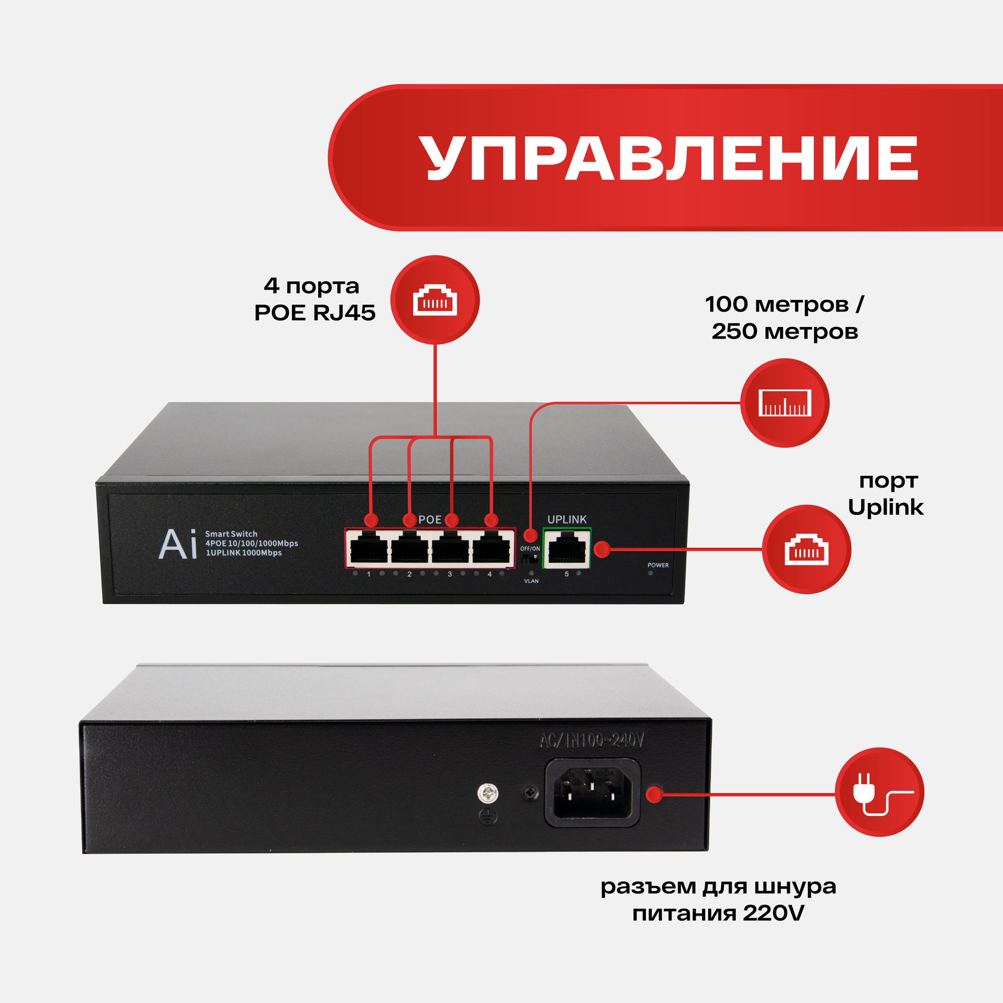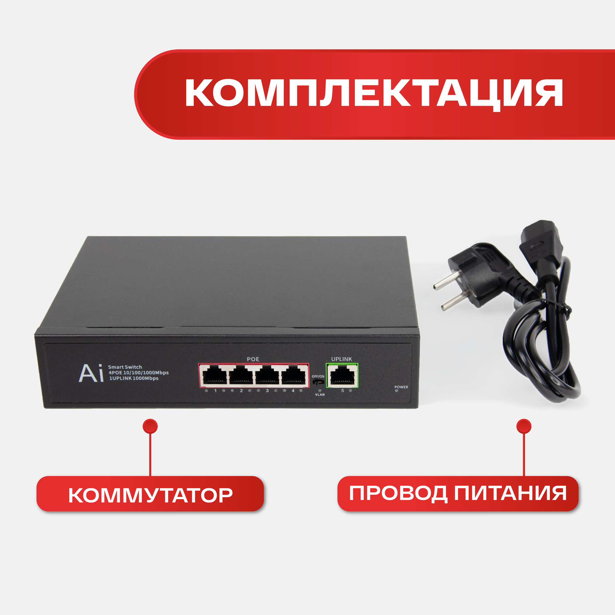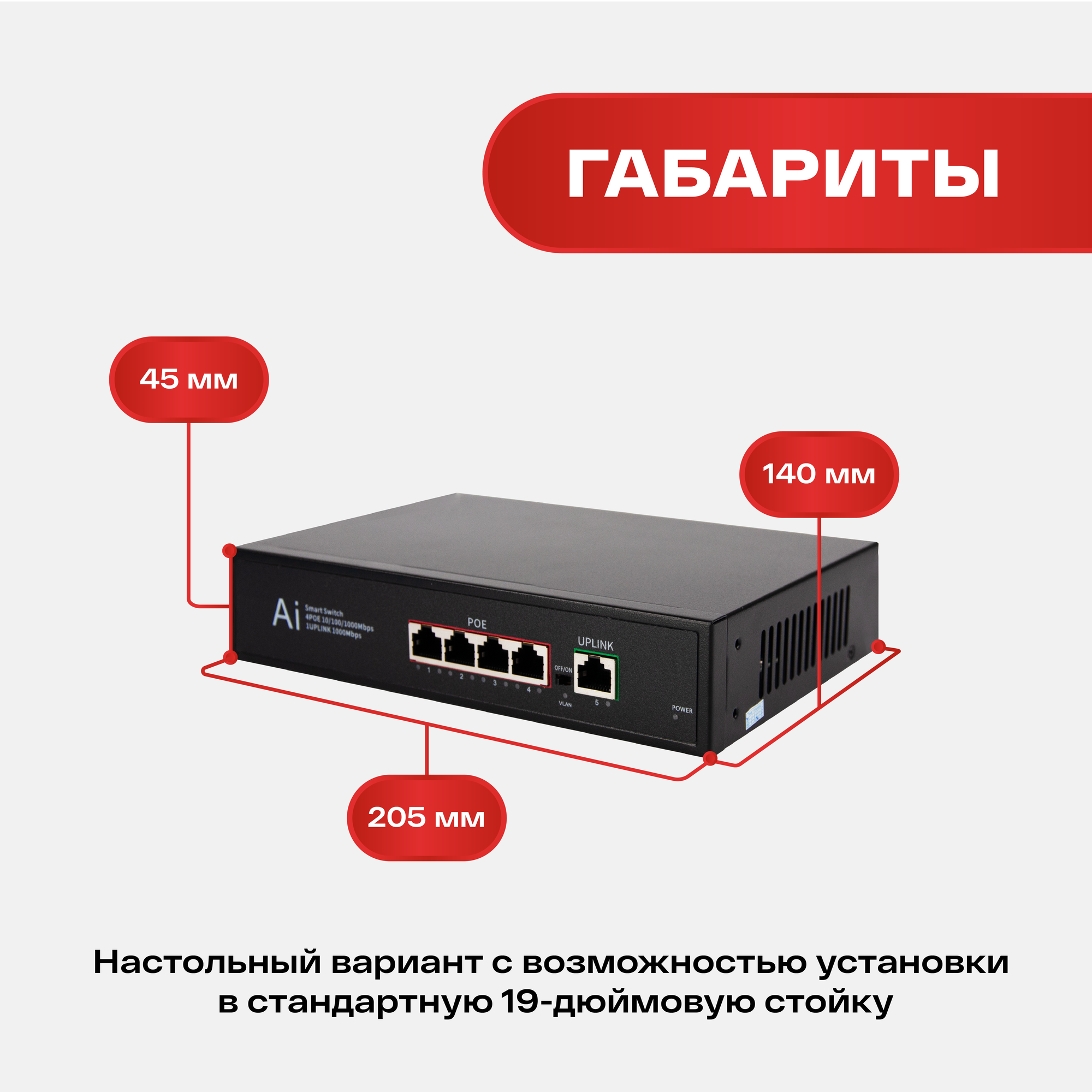 Коммутатор (свитч) 4 POE (1 Гбит/с) порта + Uplink 1 Гбит/с DPTEK DK1000-4TP1G информация: